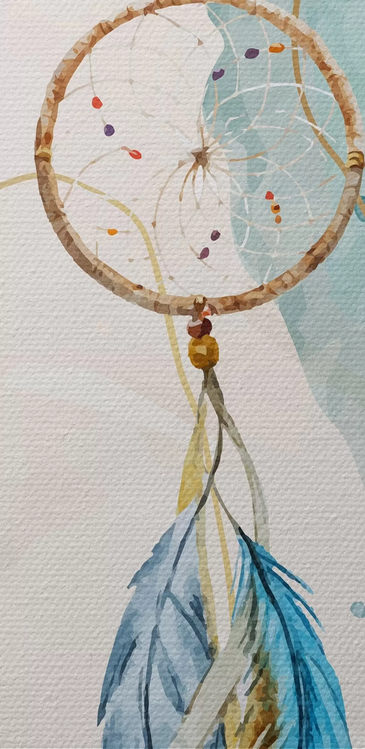 Okrągłe obrazy akwarela, łapacz snów, pióra, pastel r38330