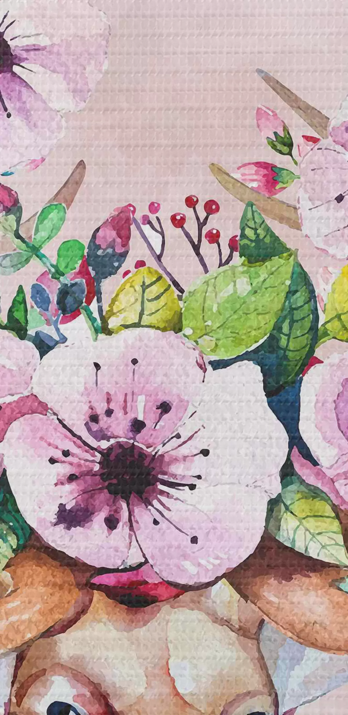 Okrągły obraz Akwarela przedstawiająca jelenia z kwiatami na porożu Nr r38331