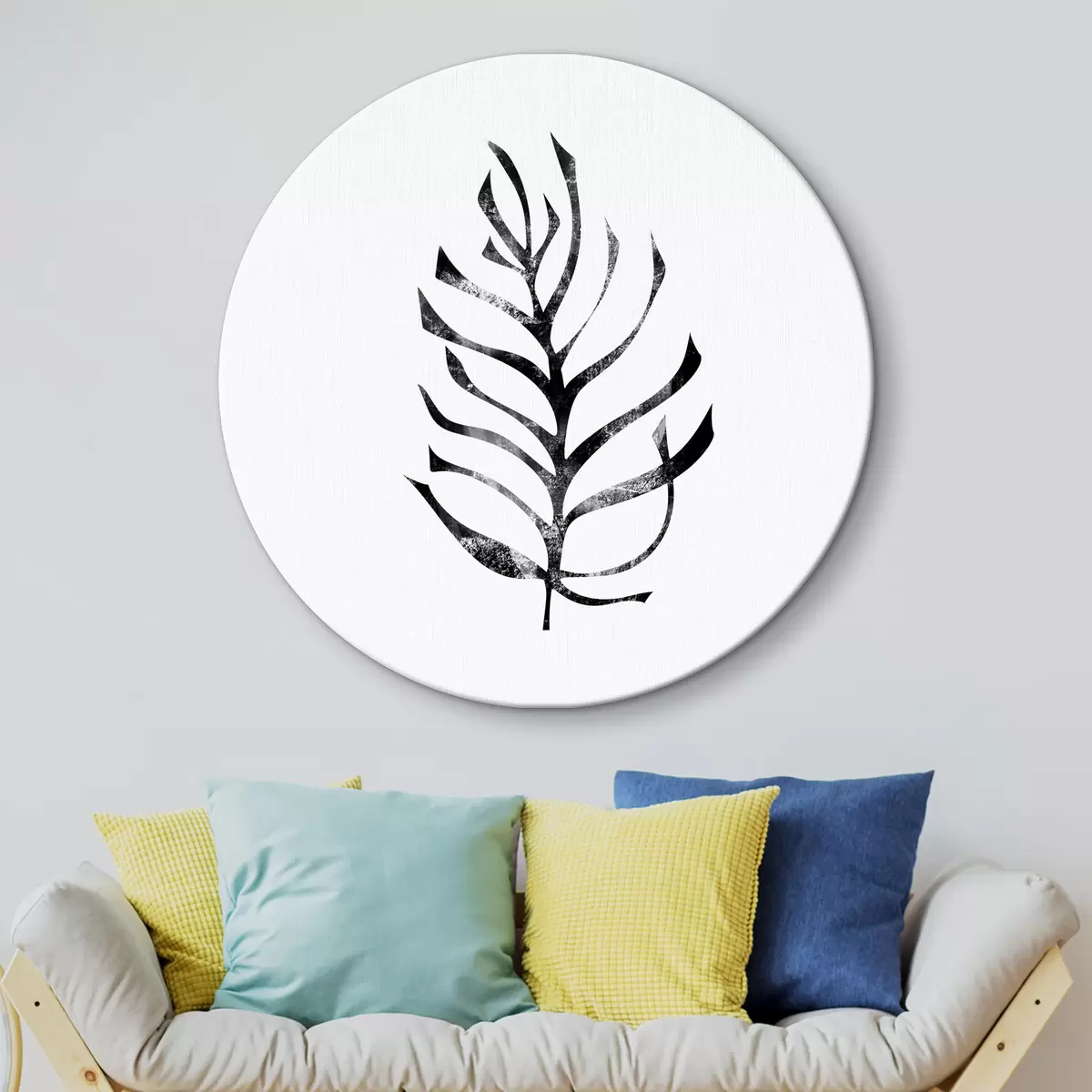 Okrągłe obrazy Minimalistyczny czarny liść tropikalny z nacięciami i fakturą, kolor czarny, szary r38341