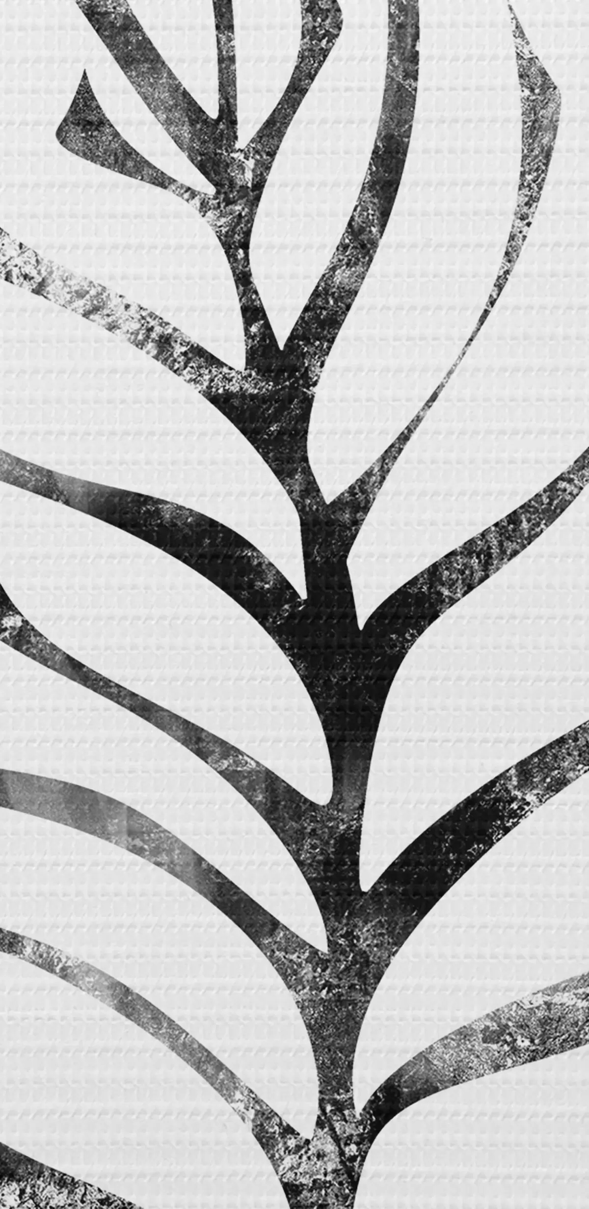 Okrągły obraz Minimalistyczny czarny liść tropikalny z nacięciami i fakturą, kolor czarny, szary Nr r38341