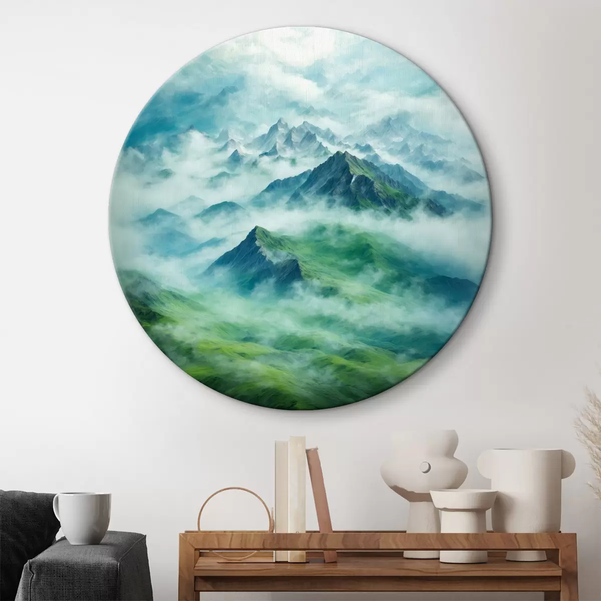 Okrągły obraz Pasmo górskie z chmurami Nr r38359