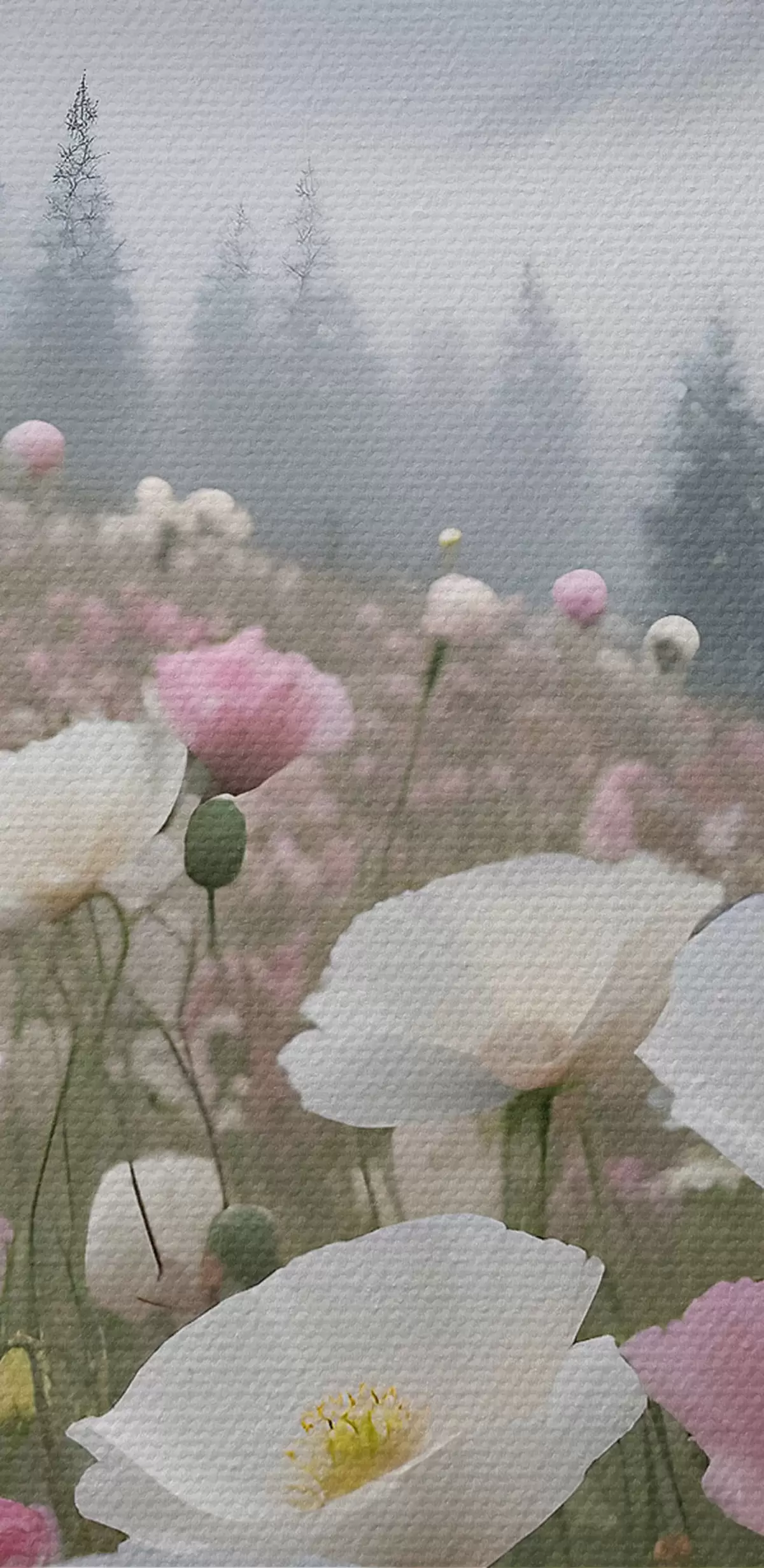 Drobny splot nici na tym płótnie przypomina powierzchnię profesjonalnych płócien artystycznych.