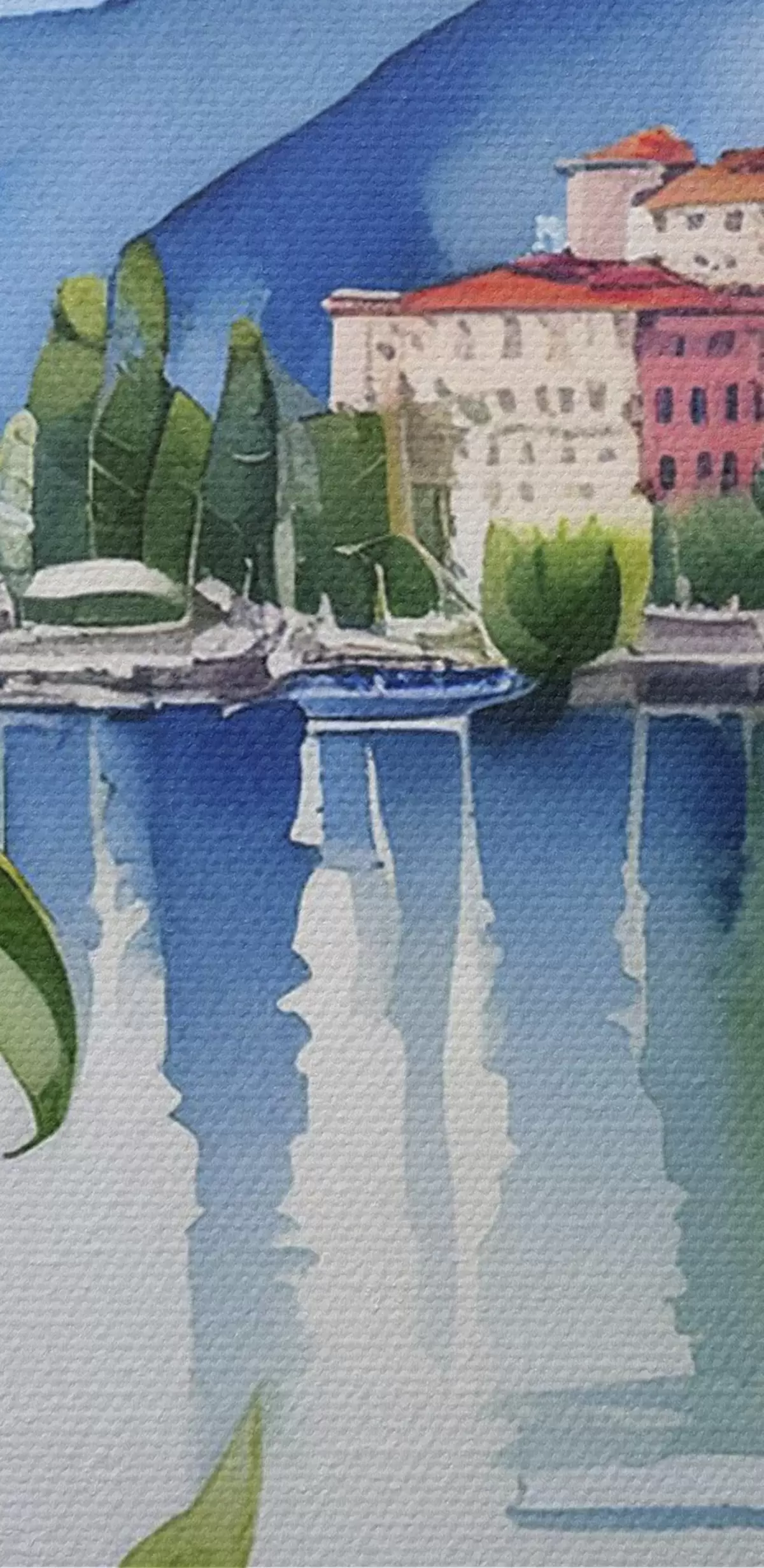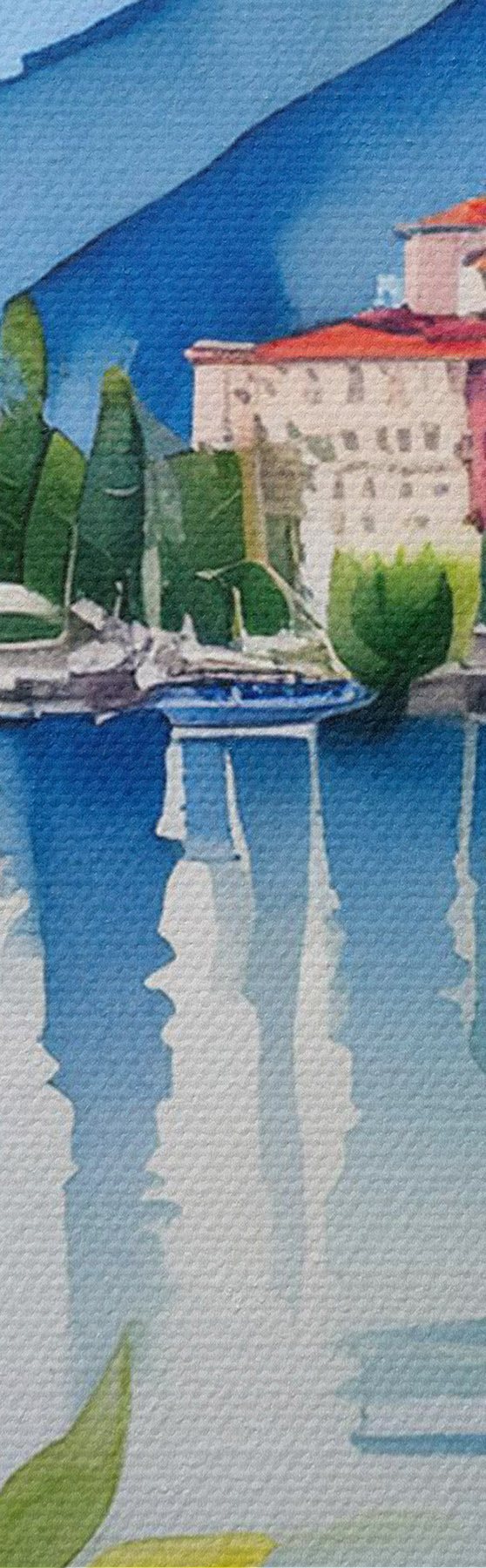 Okrągły obraz Jezioro Como, akwarela, Włochy, lato, góry, drzewo cytrynowe, morze, stare miasto Nr r38398