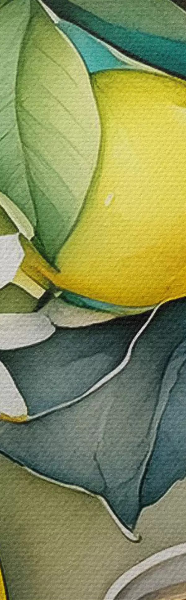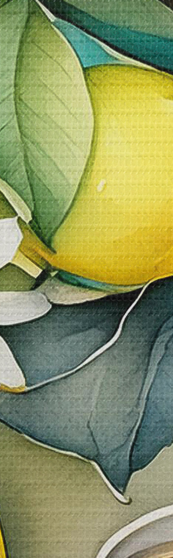 Okrągłe obrazy Cytryny i kwiaty, akwarela, śniadanie, filiżanka herbaty, styl boho r38403