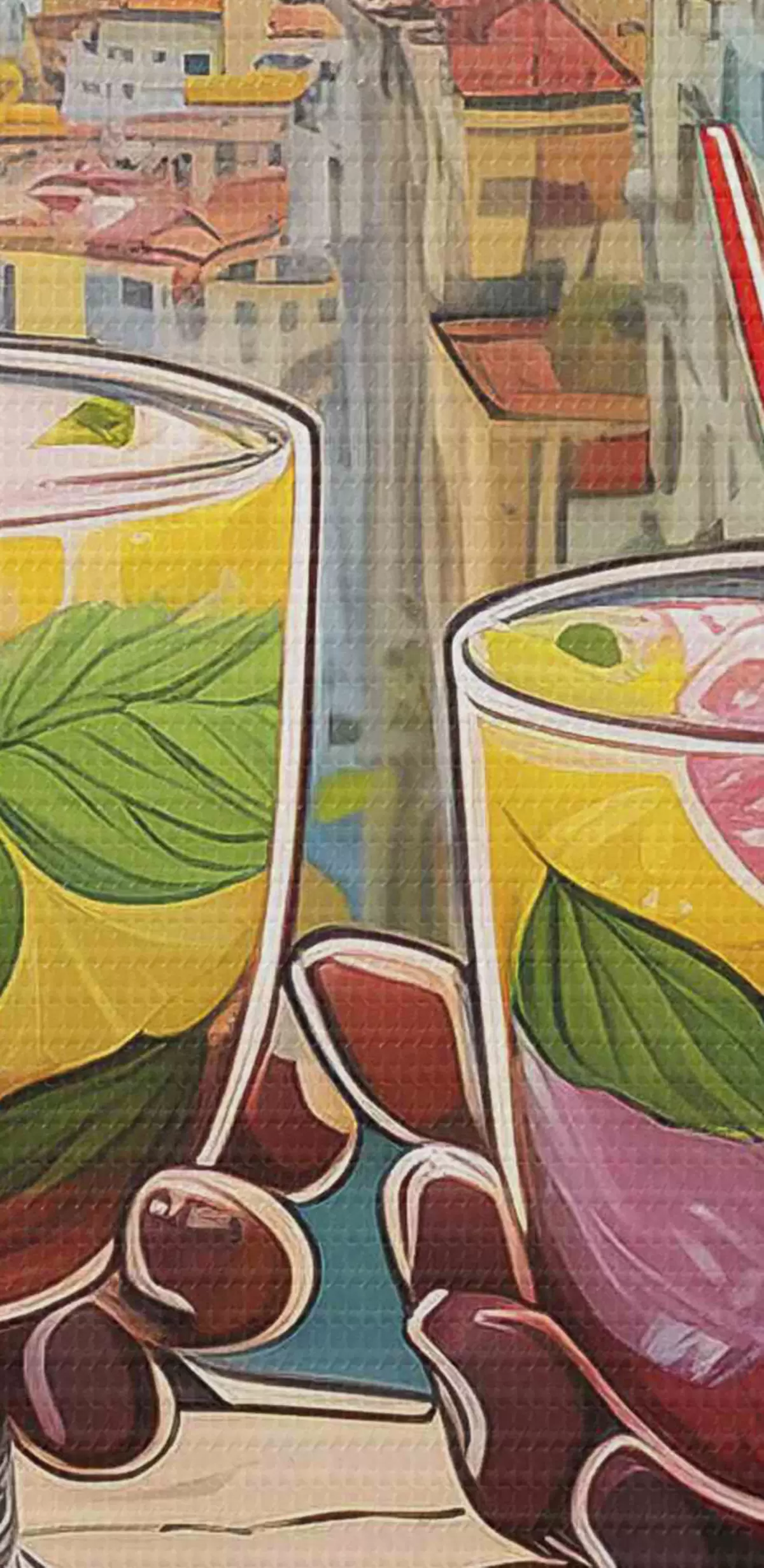 Okrągły obraz Para rąk trzymających szklanki z owocami i liśćmi. Nr r38405