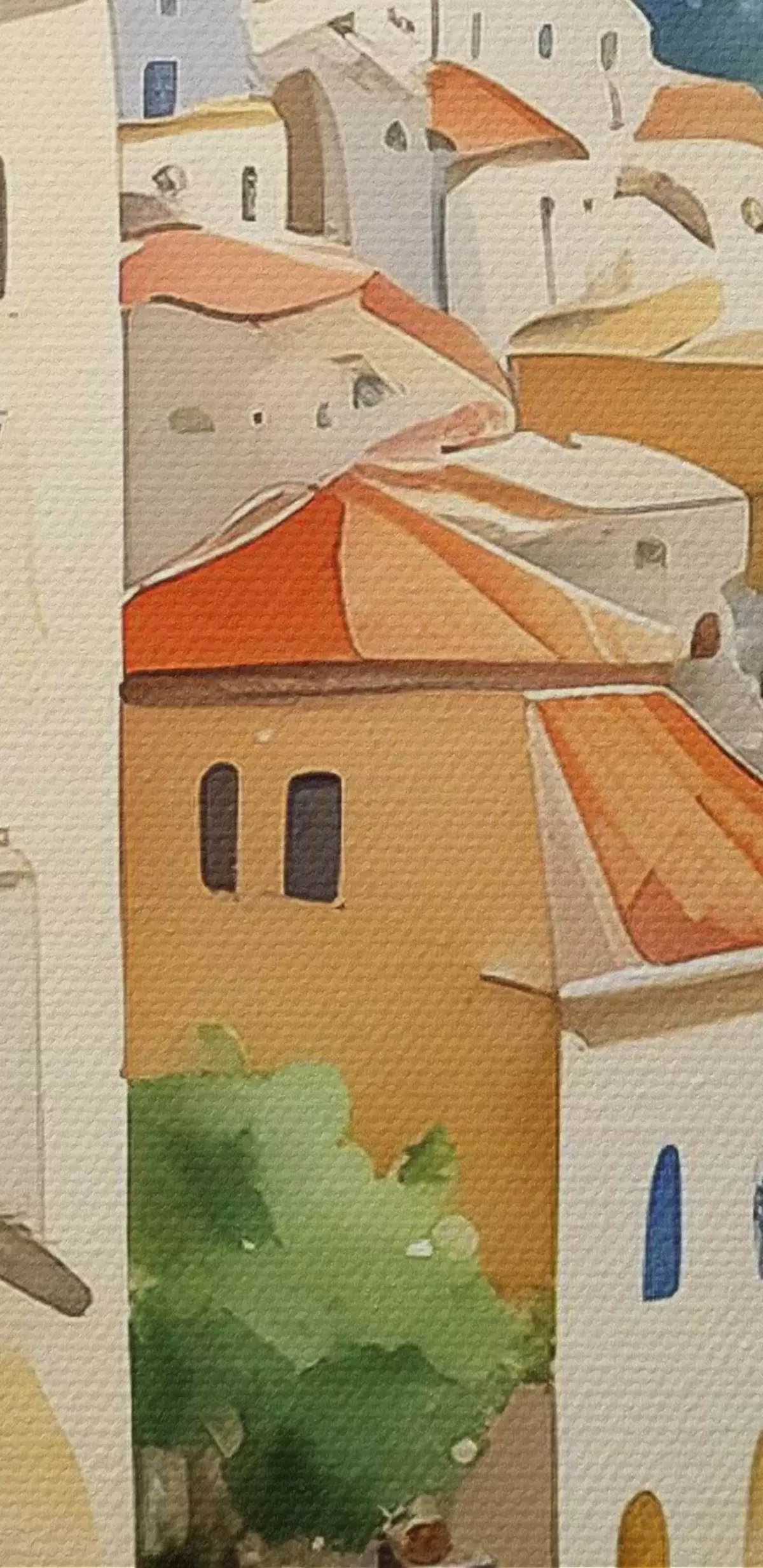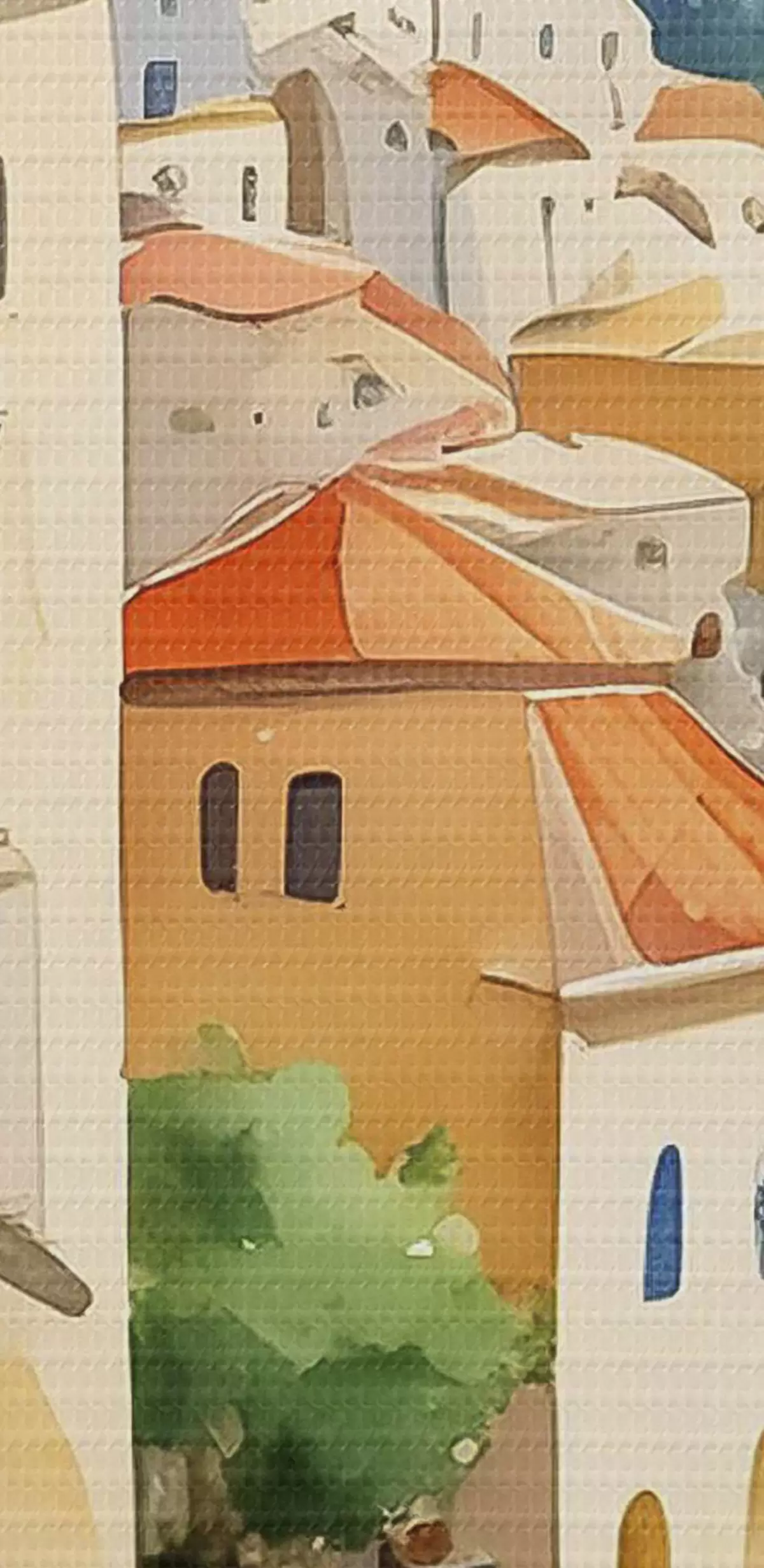 Okrągły obraz Akwarela przedstawiająca miasto na wzgórzu nad morzem Nr r38409