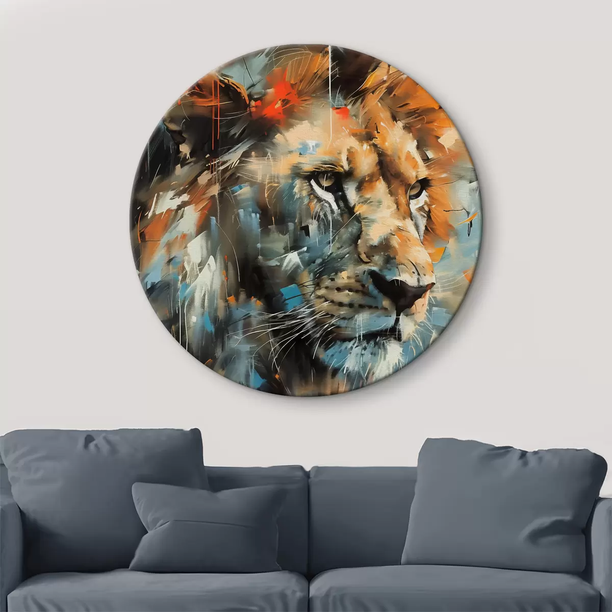 Okrągły obraz Tekstura z nadrukiem trendu Safari Lion Nr r38422