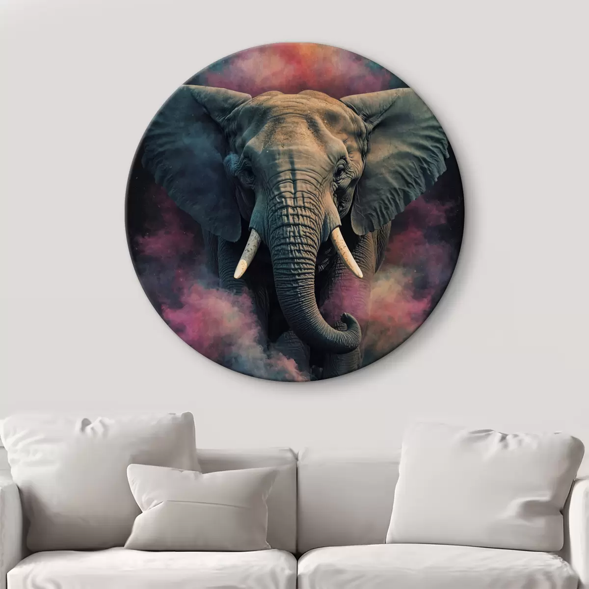 Okrągły obraz Słoń na czarnym tle Nr r38436