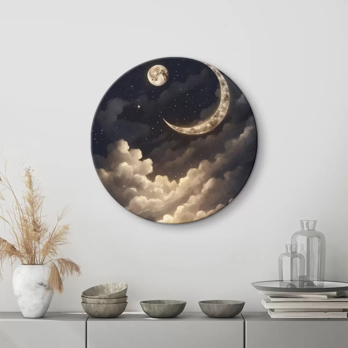 Okrągły obraz Księżyc i chmury na niebie Nr r38437