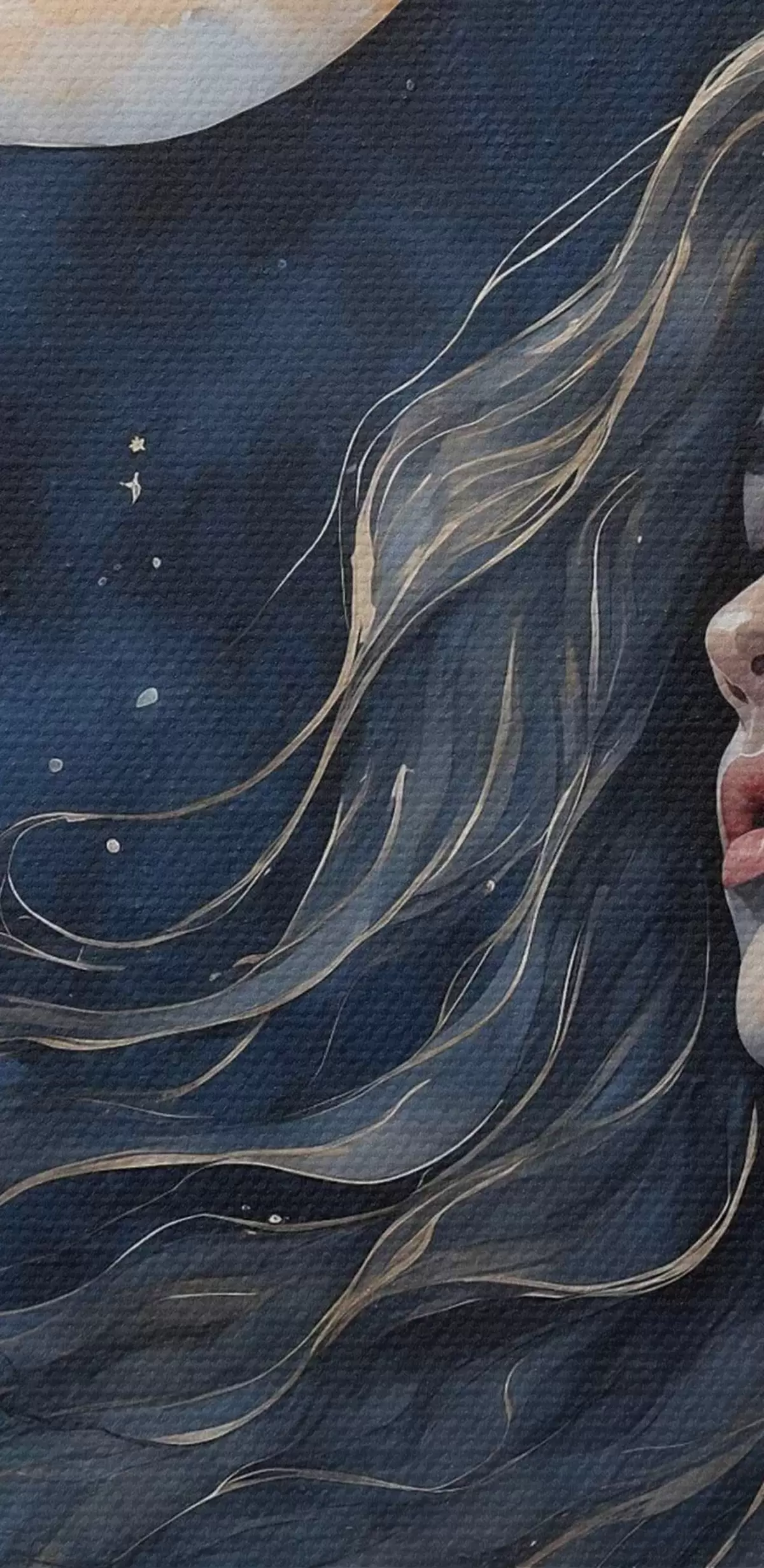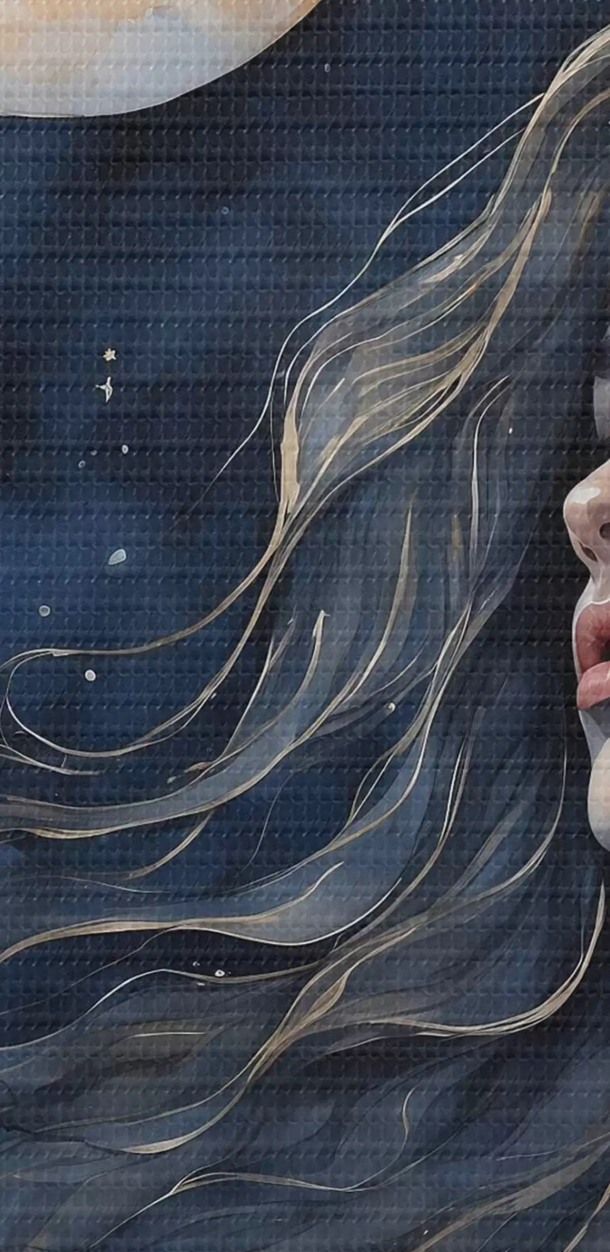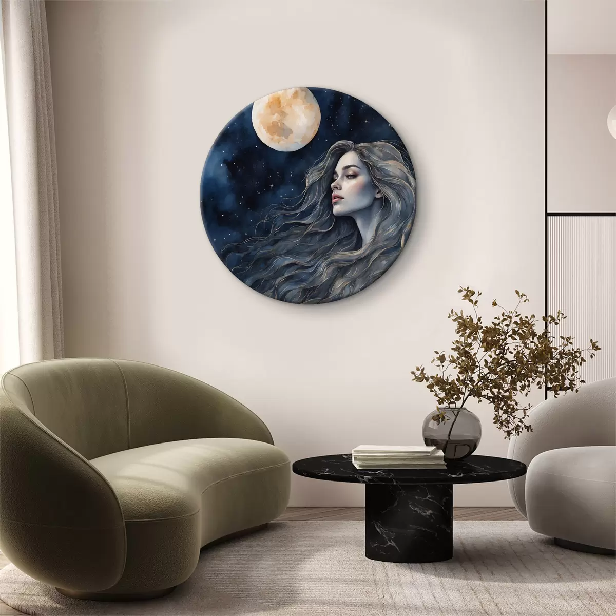 Okrągły obraz Kobieta z długimi włosami i księżyc Nr r38438