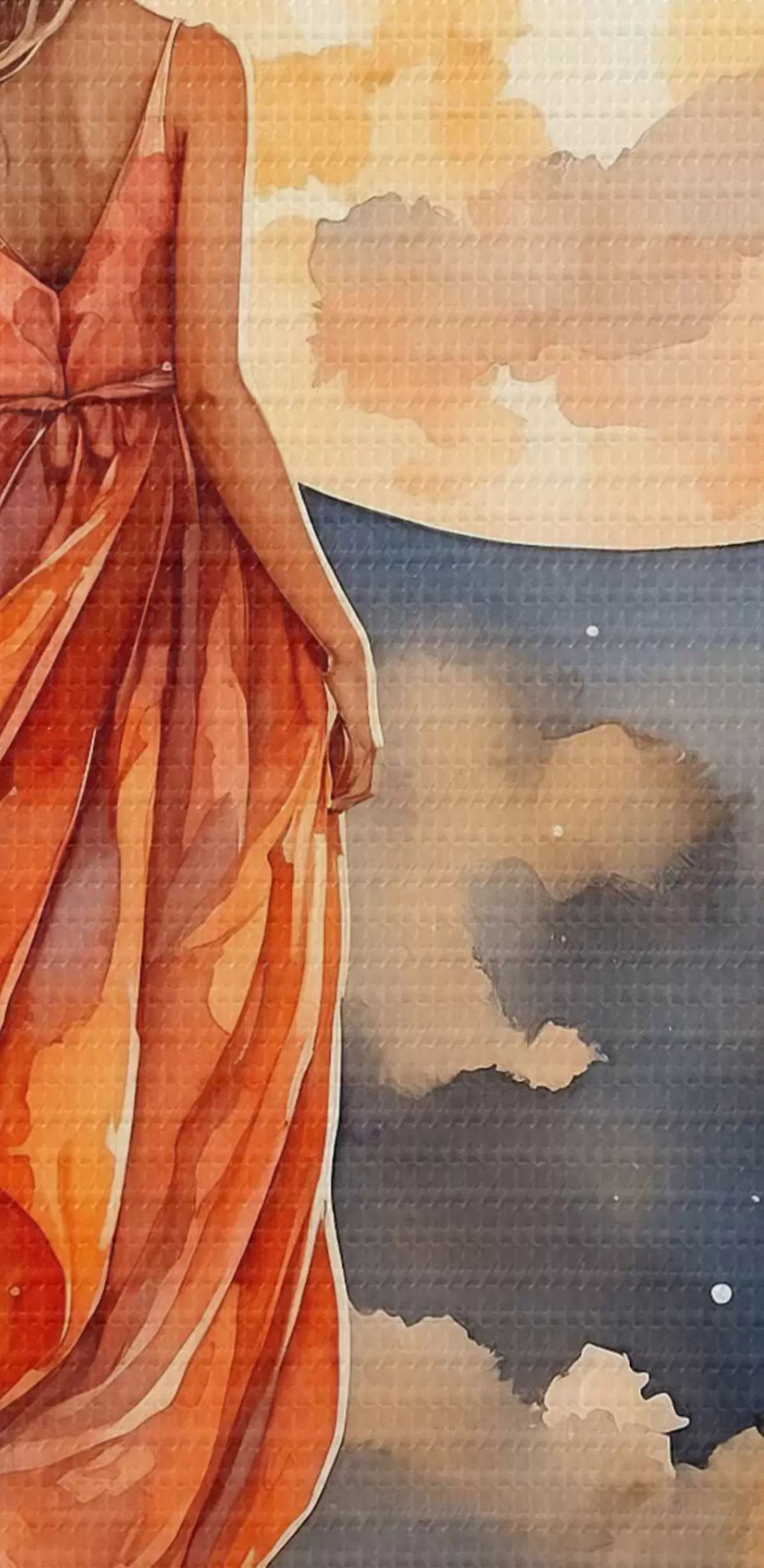 Okrągły obraz Kobieta w sukience spacerująca po chmurze Nr r38440
