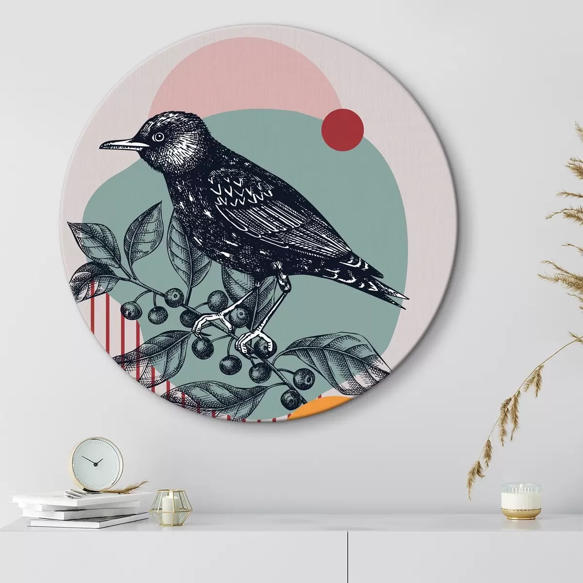 Okrągły obraz Ptak na gałęzi Nr r38445