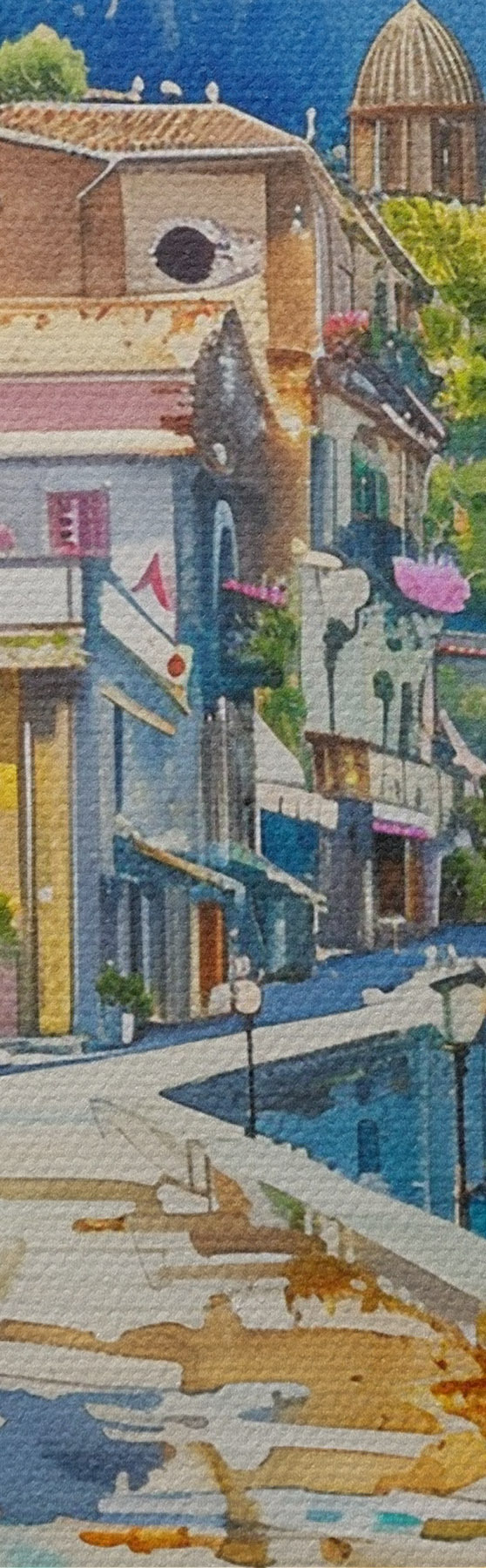 Sprzedajemy obrazy na blejtramie - jest to drewniana rama, na którą naciągnięte jest płótno. Tego obrazu nie trzeba oprawiać; można go powiesić bezpośrednio na ścianie.