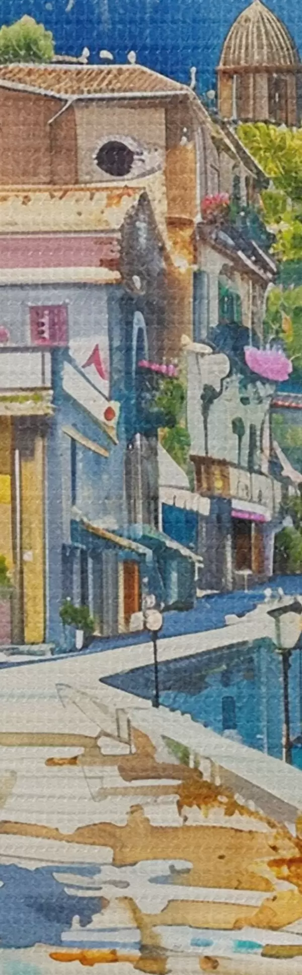 Drobny splot nici na tym płótnie przypomina powierzchnię profesjonalnych płócien artystycznych.