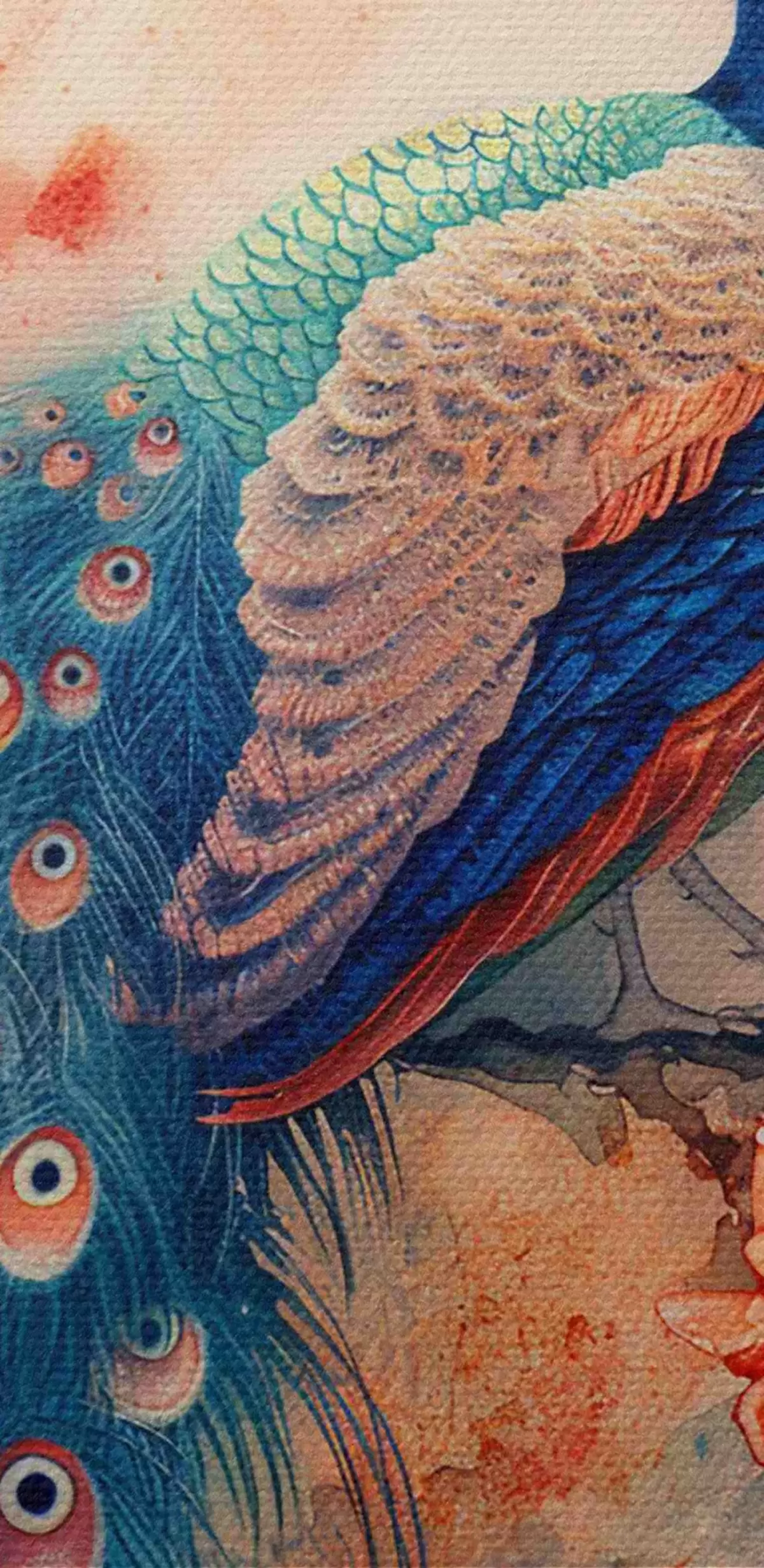 Okrągły obraz Obraz przedstawiający pawia na gałęzi z kwiatami Nr r38455