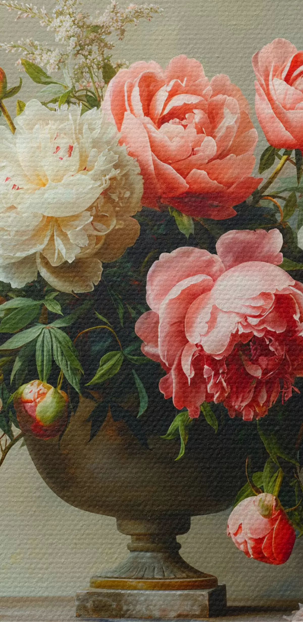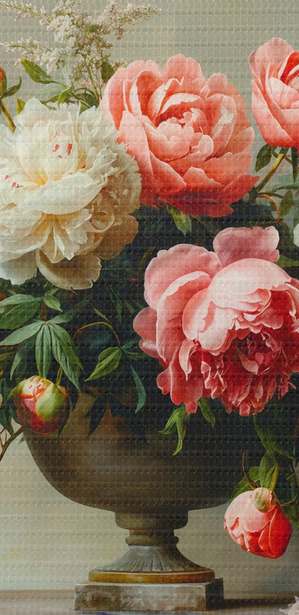 Okrągły obraz Bujny bukiet piwonii i czarny wazon Nr r38460
