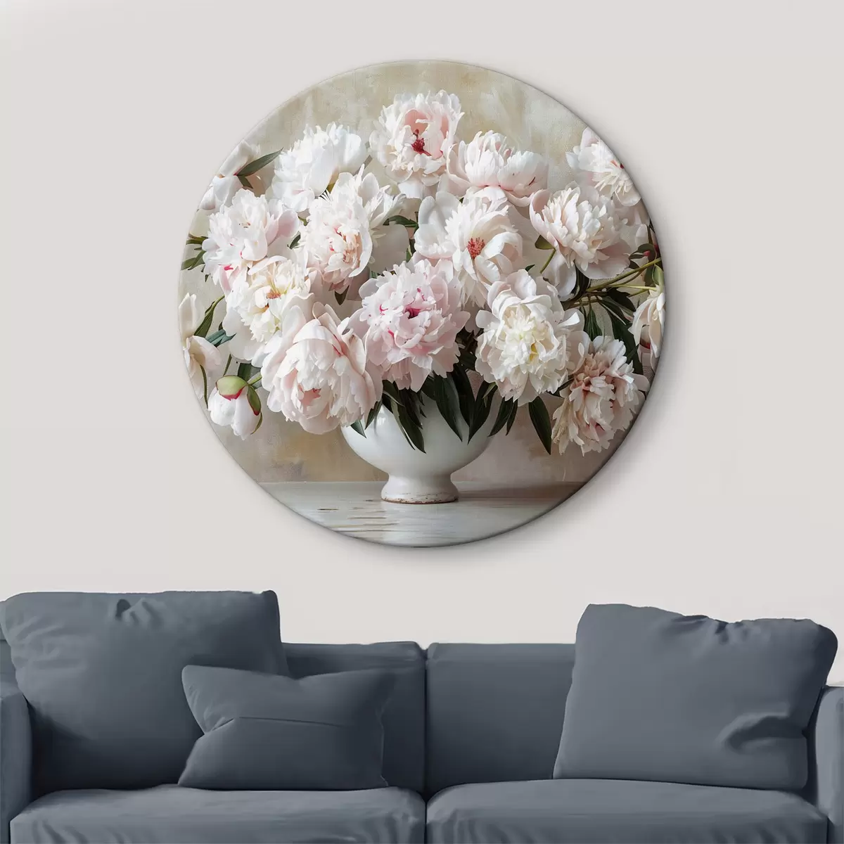 Okrągły obraz Lekkie piwonie w wazonie Nr r38461