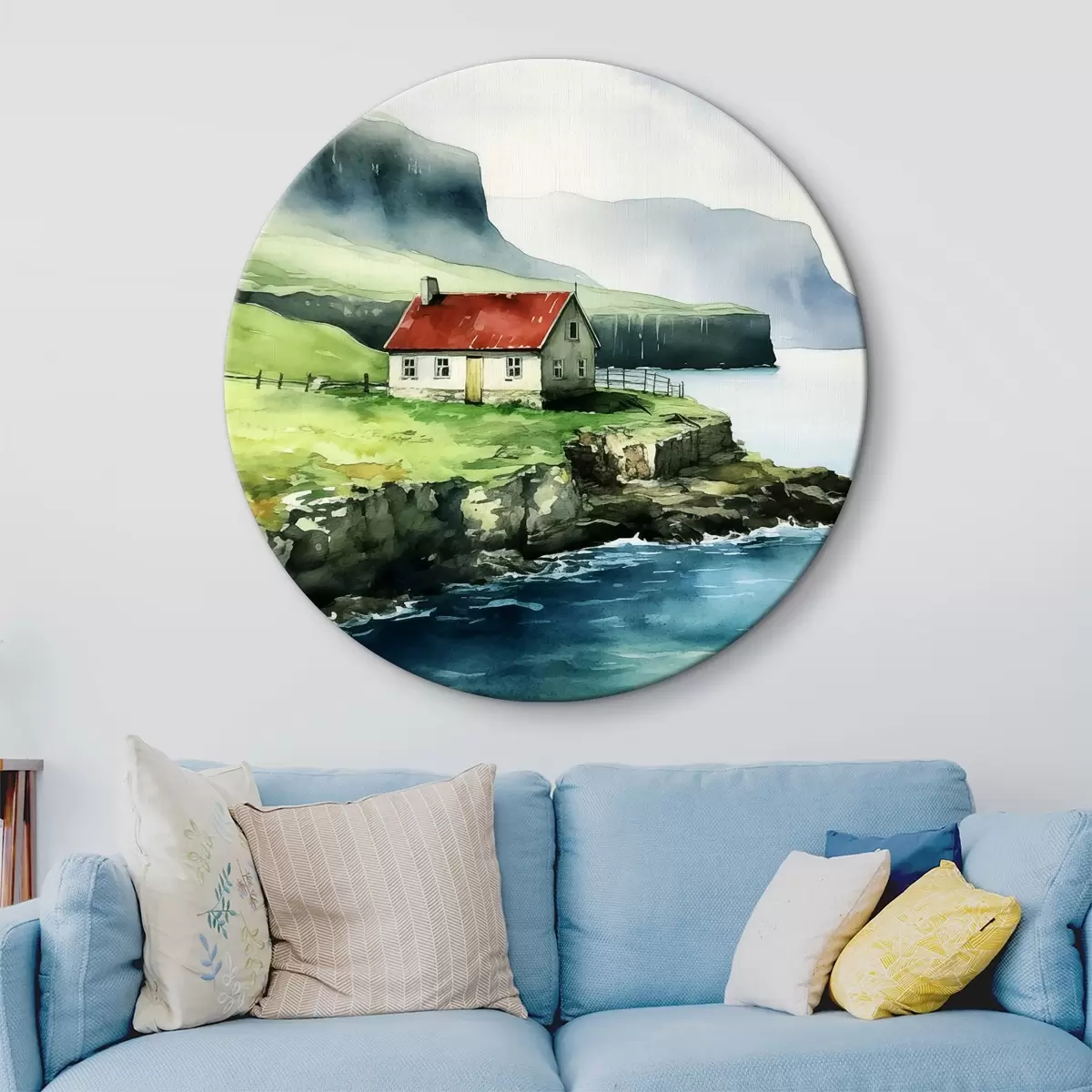 Okrągły obraz Dom na klifie nad wodą Nr r38478