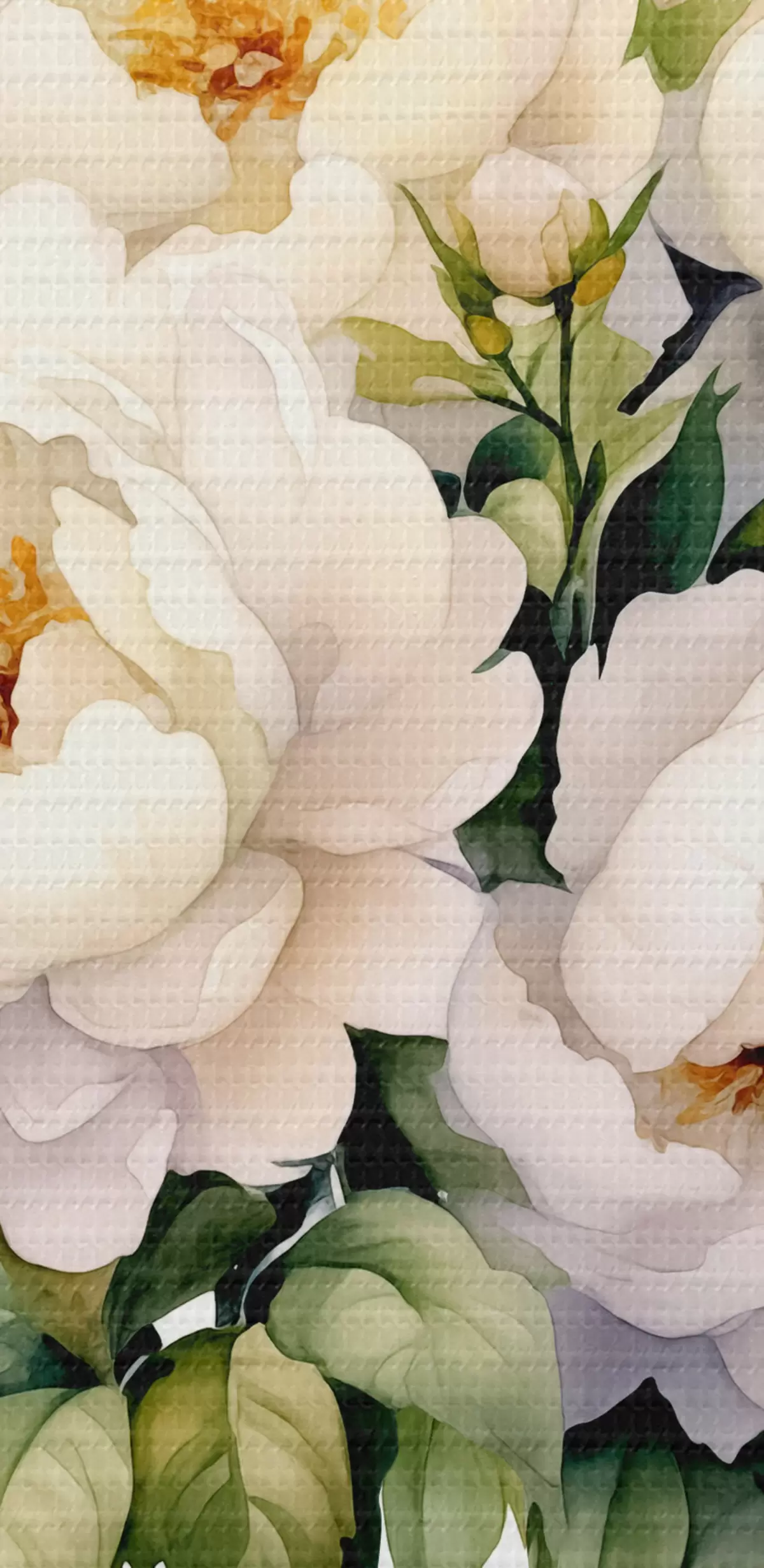 Okrągłe obrazy Białe kwitnące kwiaty piwonii w zielonych liściach, akwarela, botaniczna r38481
