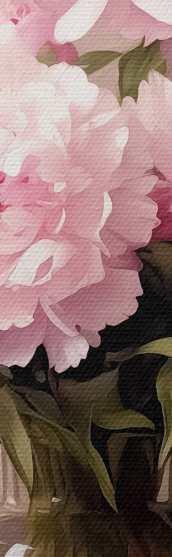 Okrągły obraz Różowe piwonie w szklanym wazonie na czarnym tle, imitacja obrazu olejnego, kwiaty Nr r38482