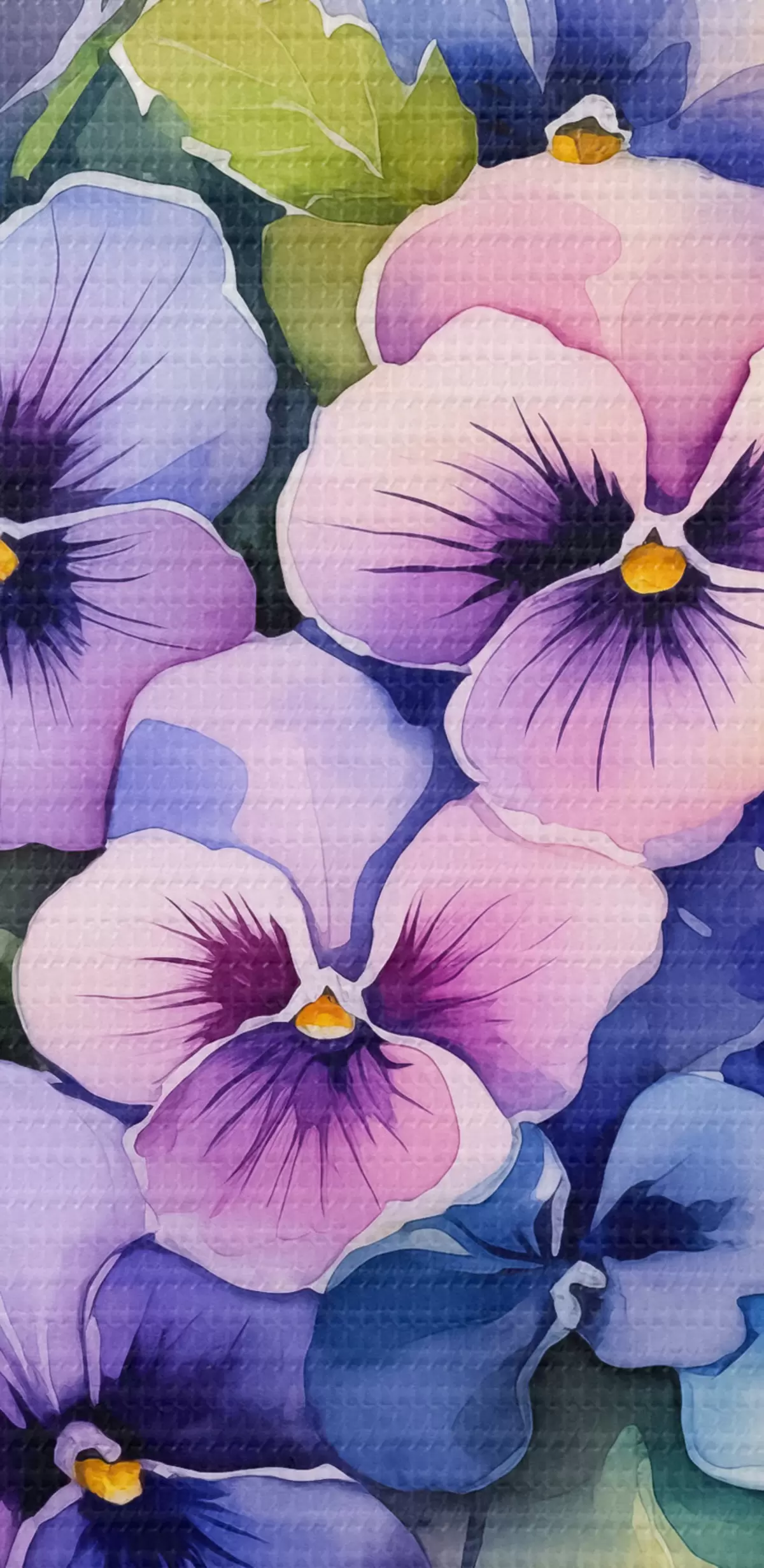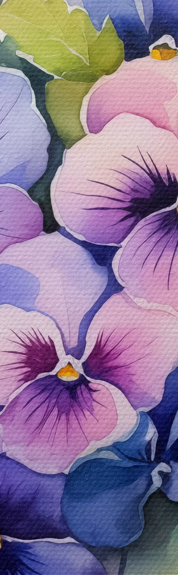 Okrągły obraz Fiołki akwarela ilustracja, bukiet, kwiaty, kolor niebieski, fioletowy, zielony Nr r38486