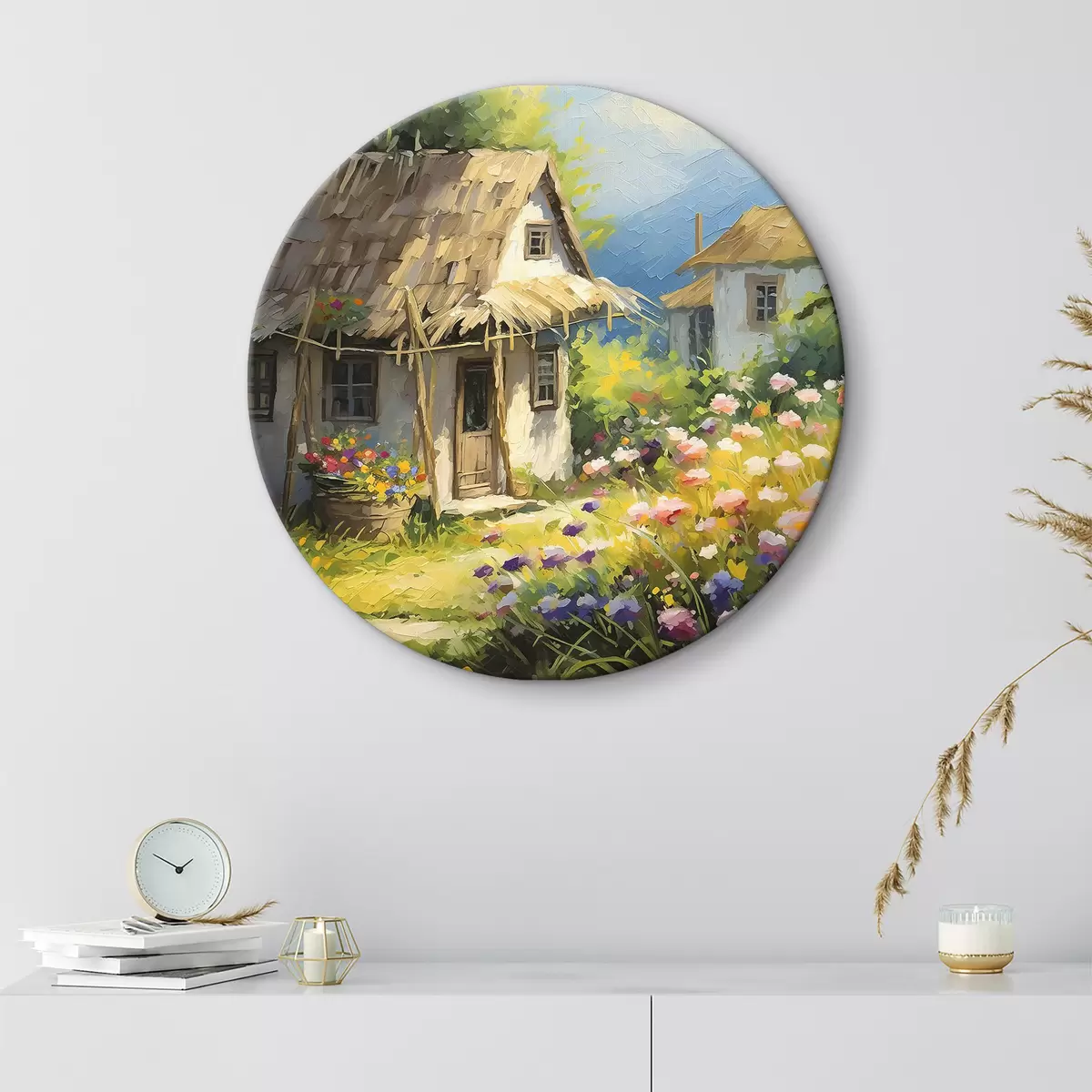 Okrągły obraz Malowanie domu kwiatami Nr r38495