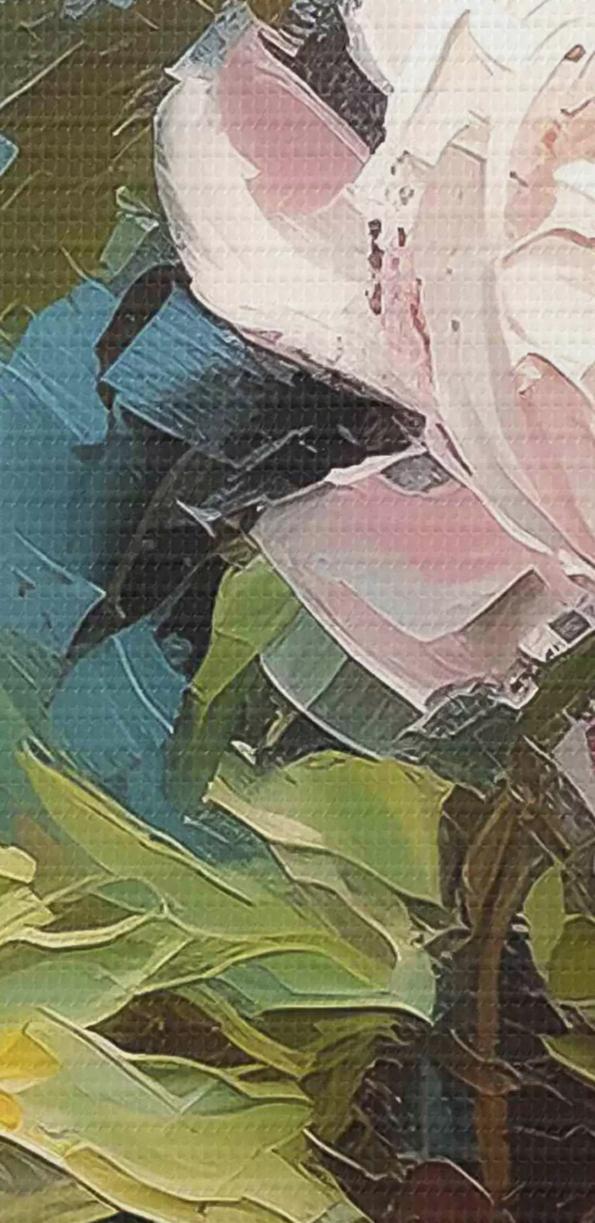 Drobny splot nici na tym płótnie przypomina powierzchnię profesjonalnych płócien artystycznych.