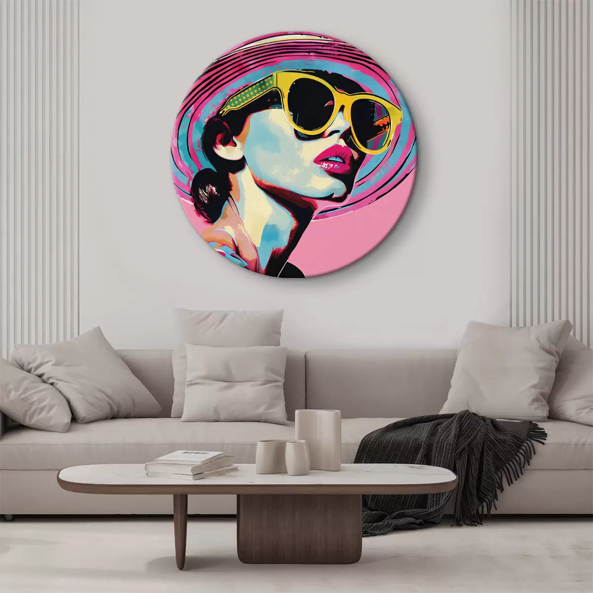 Okrągły obraz Kolorowy portret stylowej kobiety w okularach przeciwsłonecznych Nr r38508