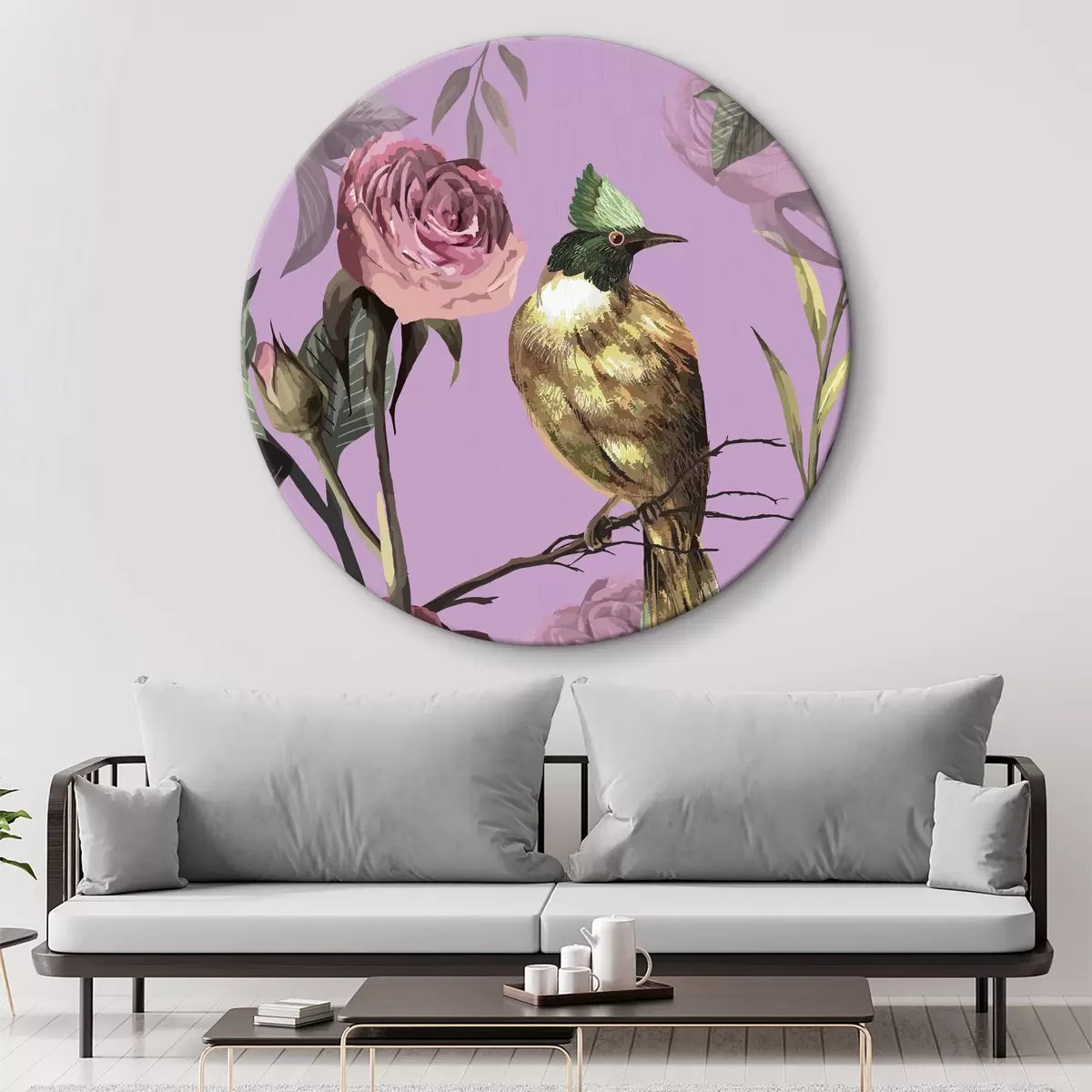 Okrągły obraz Ptak na gałęzi z kwiatami Nr r38564