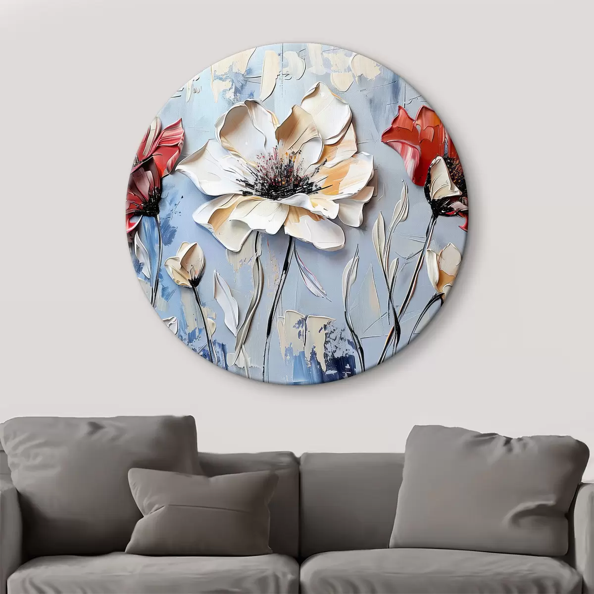 Okrągły obraz Żywe kwiaty na spokojnym niebieskim tle Nr r38572