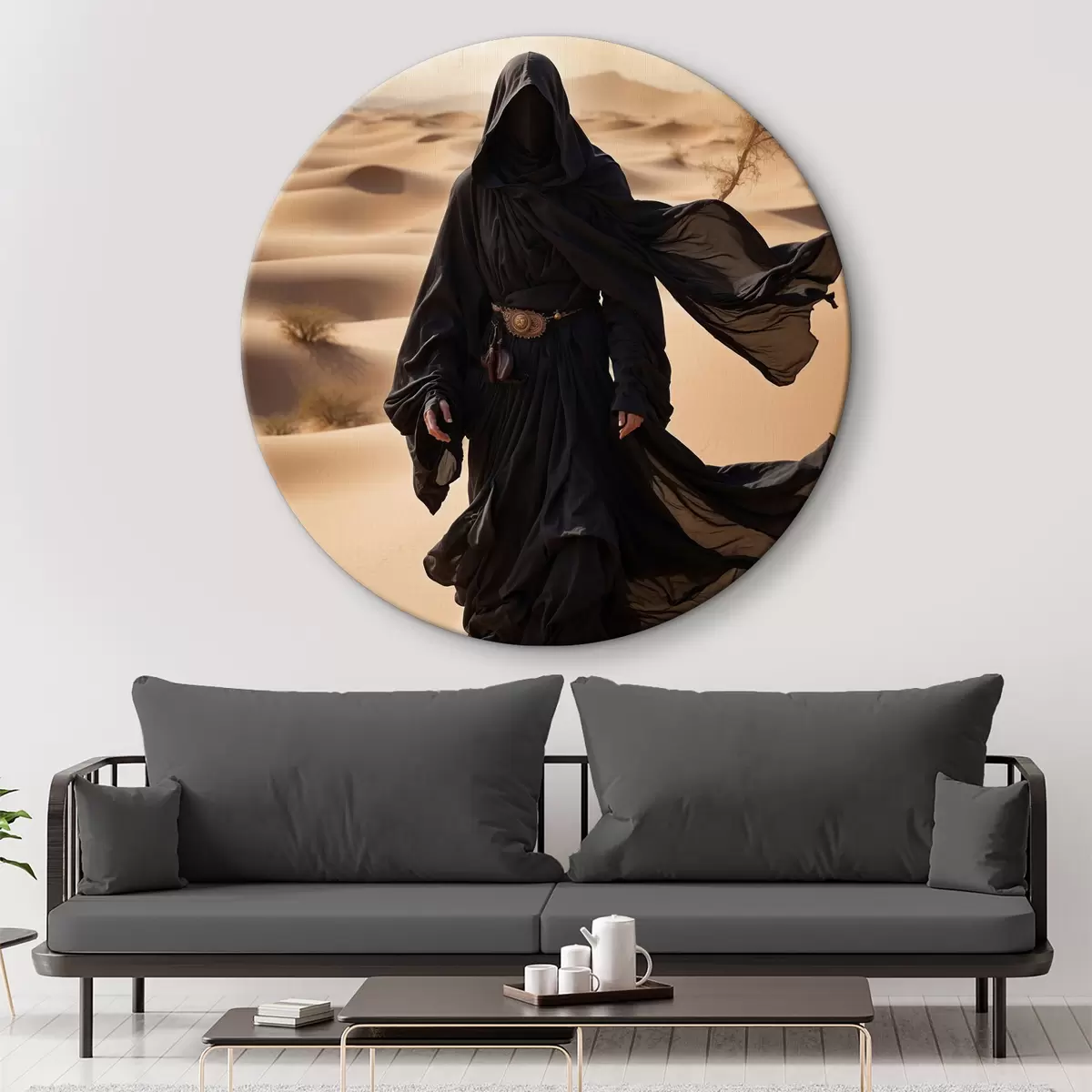 Okrągły obraz Tajemniczy wędrowiec na piaskach pustyni Nr r38586