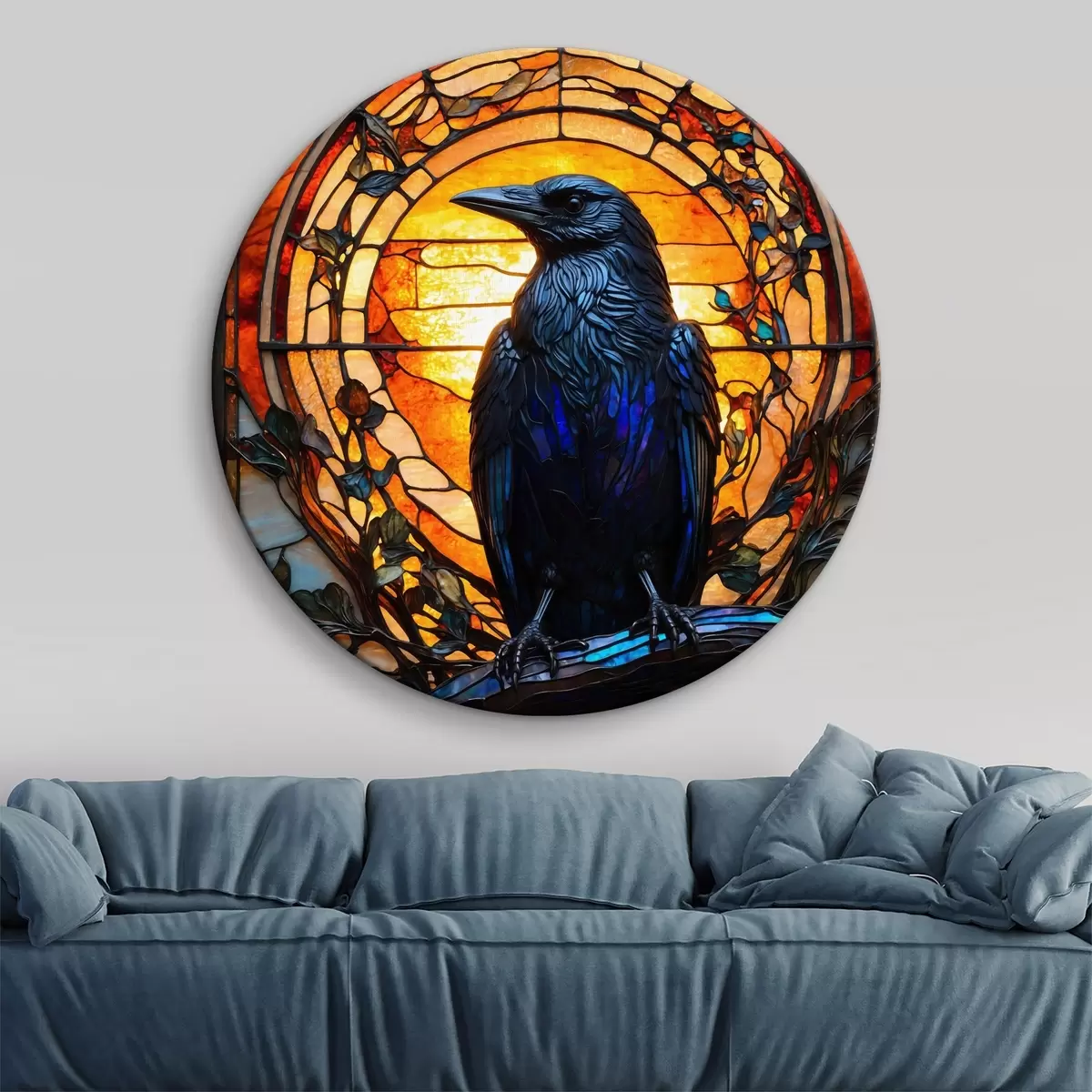 Okrągły obraz Kruk na gałęzi Nr r38591