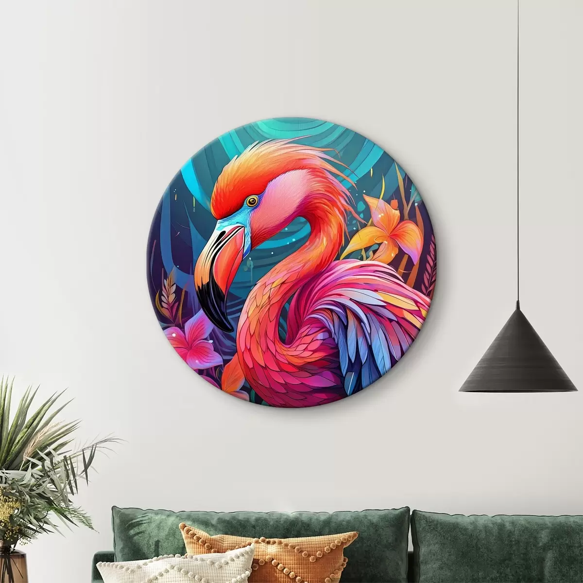 Okrągłe obrazy Kolorowy różowy flaming z kwiatami r38609