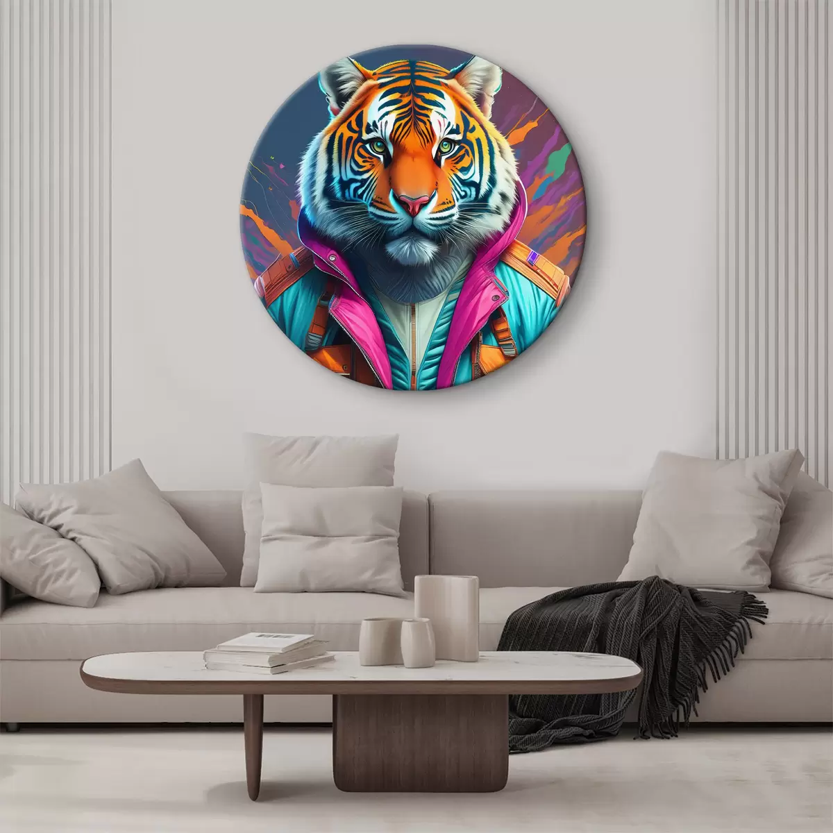 Okrągły obraz Tygrys w kurtce Nr r38610