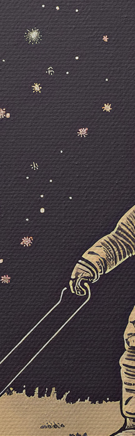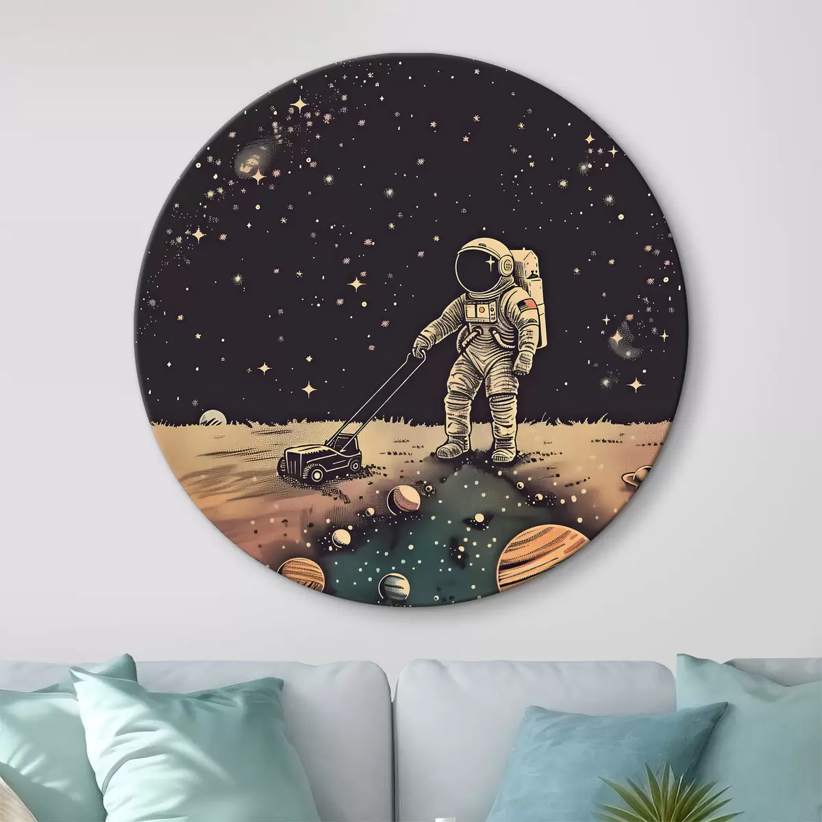 Okrągły obraz Astronauta z kosiarką w kosmosie Nr r38637
