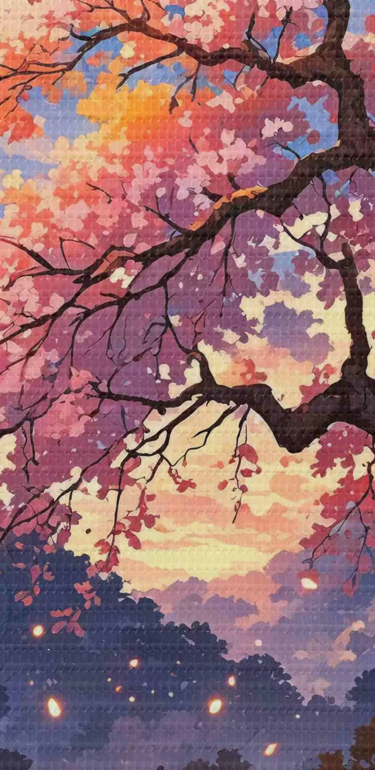 Okrągły obraz Drzewo z różowymi kwiatami przecięte rzeką Nr r38645