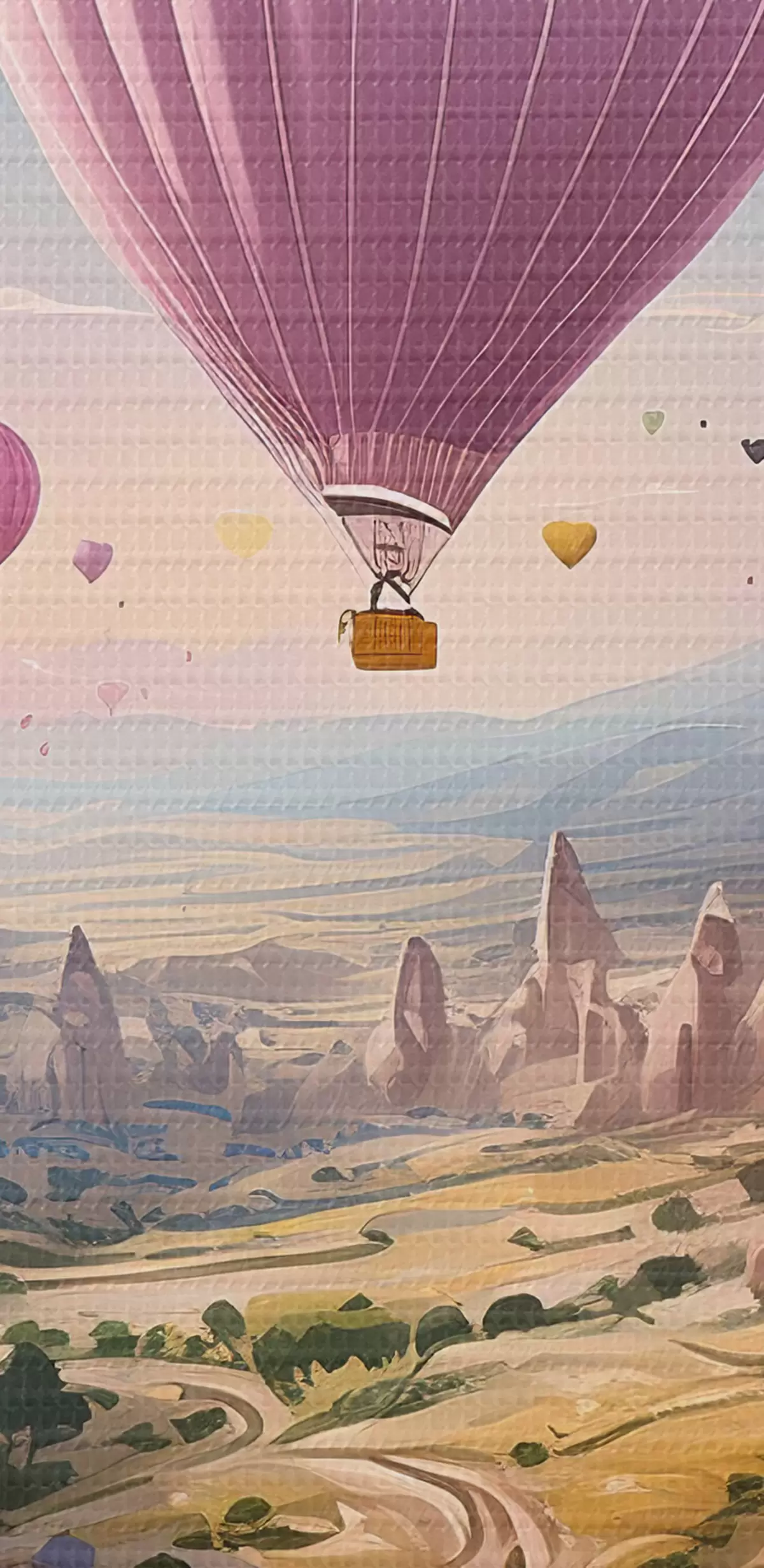 Okrągłe obrazy balony w górach nad kwiatami r38656