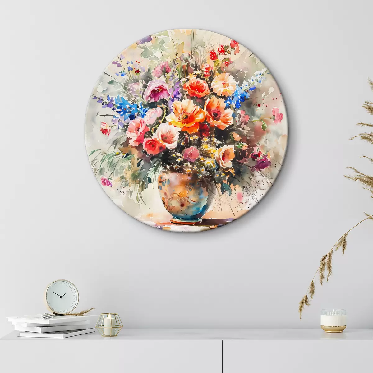 Okrągły obraz Bukiet polnych kwiatów w wazonie Nr r38713