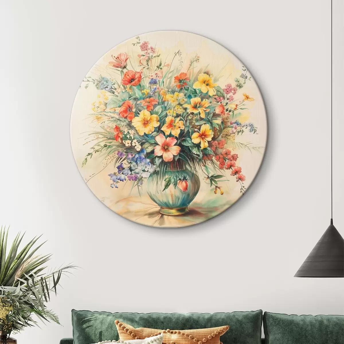 Okrągły obraz Bukiet polnych kwiatów w wazonie Nr r38714