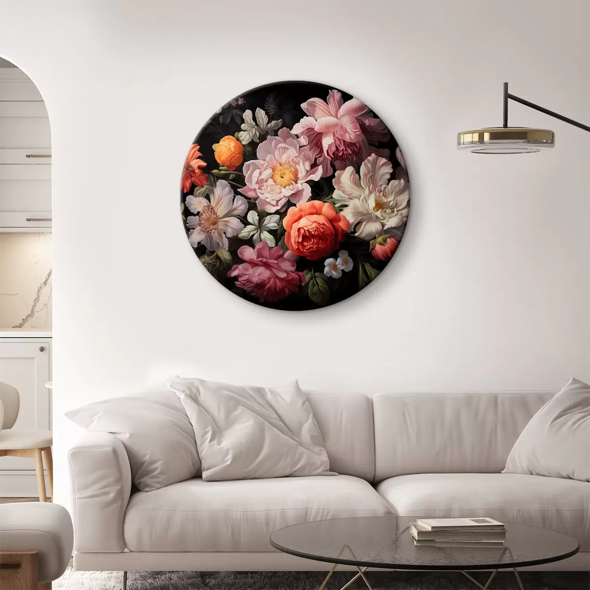Okrągły obraz Obraz kwiatów na czarnym tle Nr r38721
