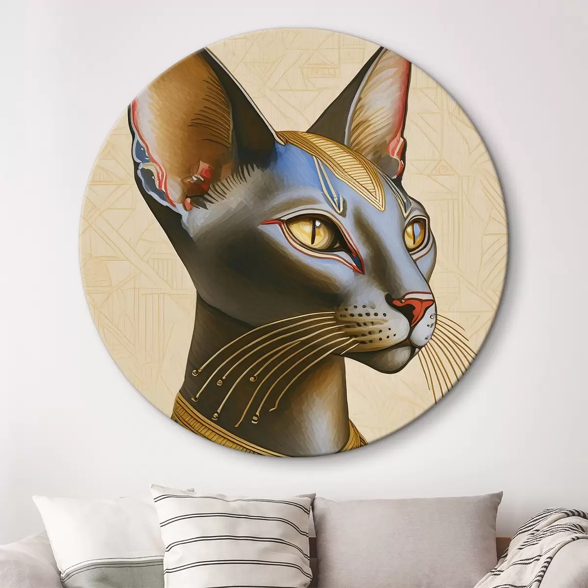 Okrągłe obrazy Bastet, egipska bogini, kot z profilu r38725