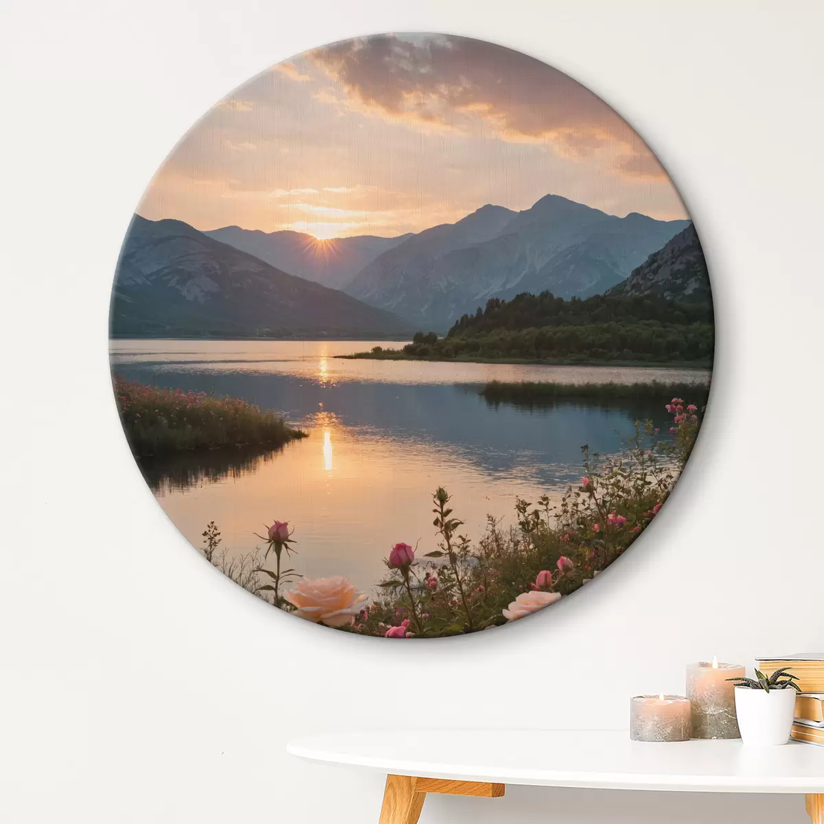 Okrągłe obrazy Krajobraz o zmierzchu nad jeziorem r38735