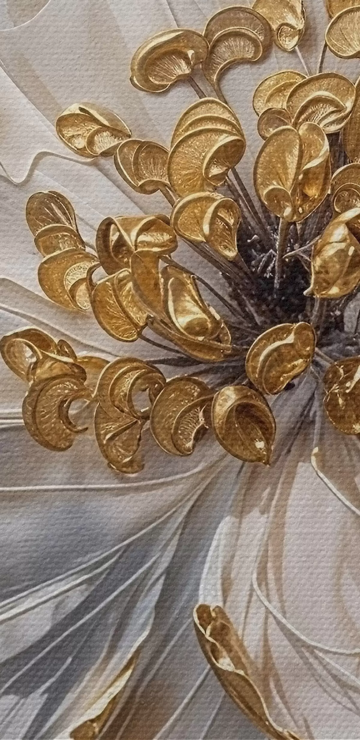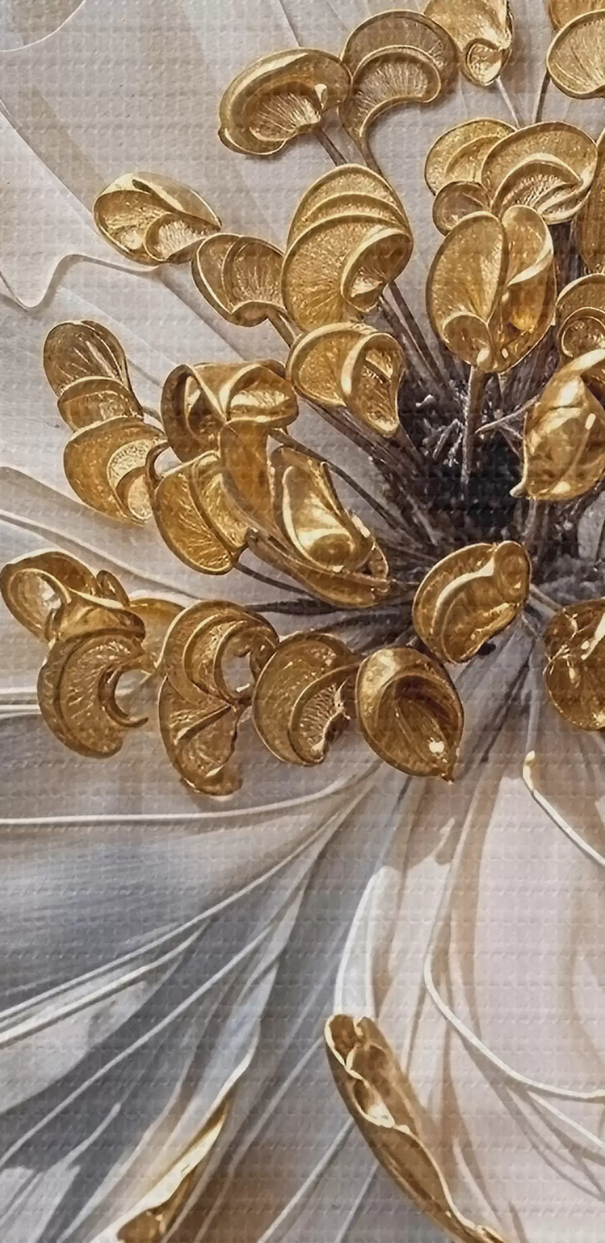 Okrągły obraz Zbliżenie dużego białego kwiatu z żółtymi pręcikami w środku, artystyczna dekoracja malowana olejem Nr r38755