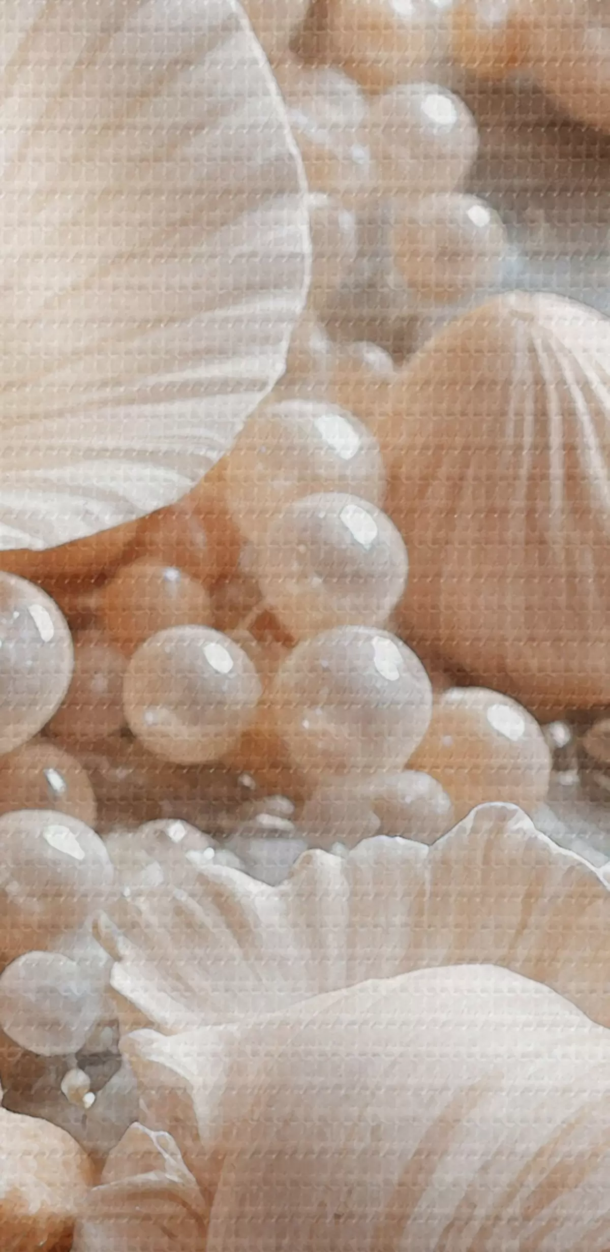 Okrągły obraz Różne muszle i perły na jasnoniebieskim tle Nr r38769