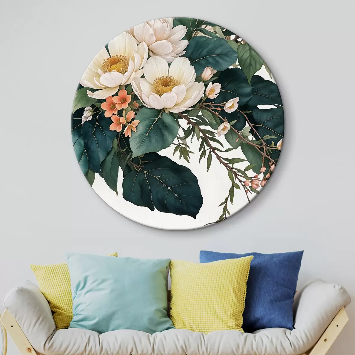 Okrągły obraz Kwiaty w stylu orientalnym Nr r38773