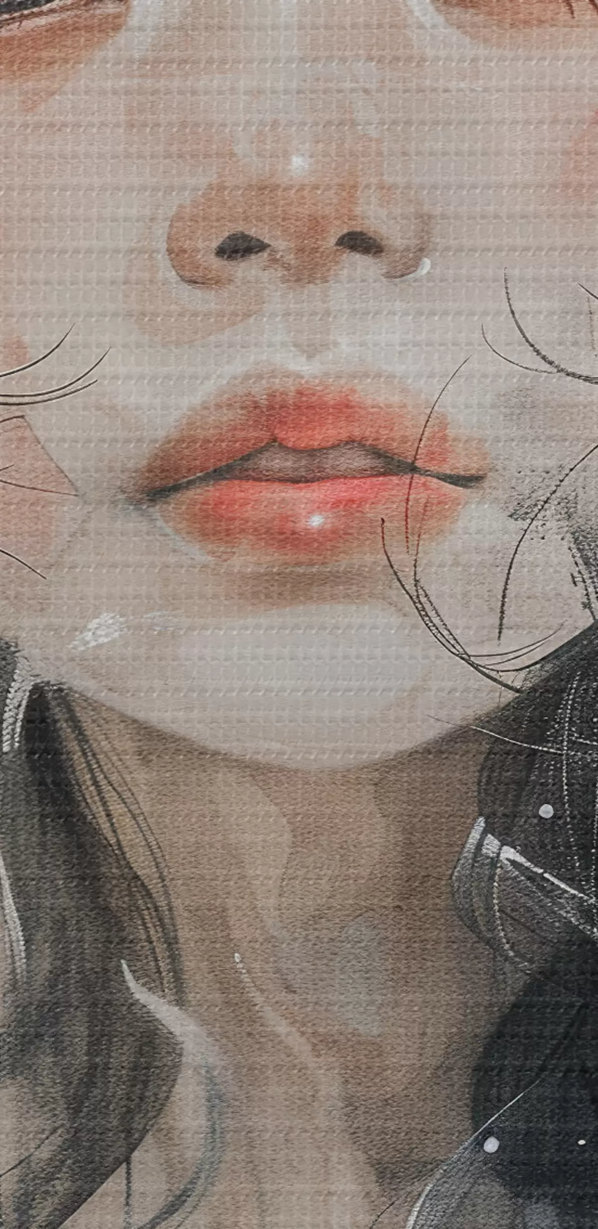 Drobny splot nici na tym płótnie przypomina powierzchnię profesjonalnych płócien artystycznych.