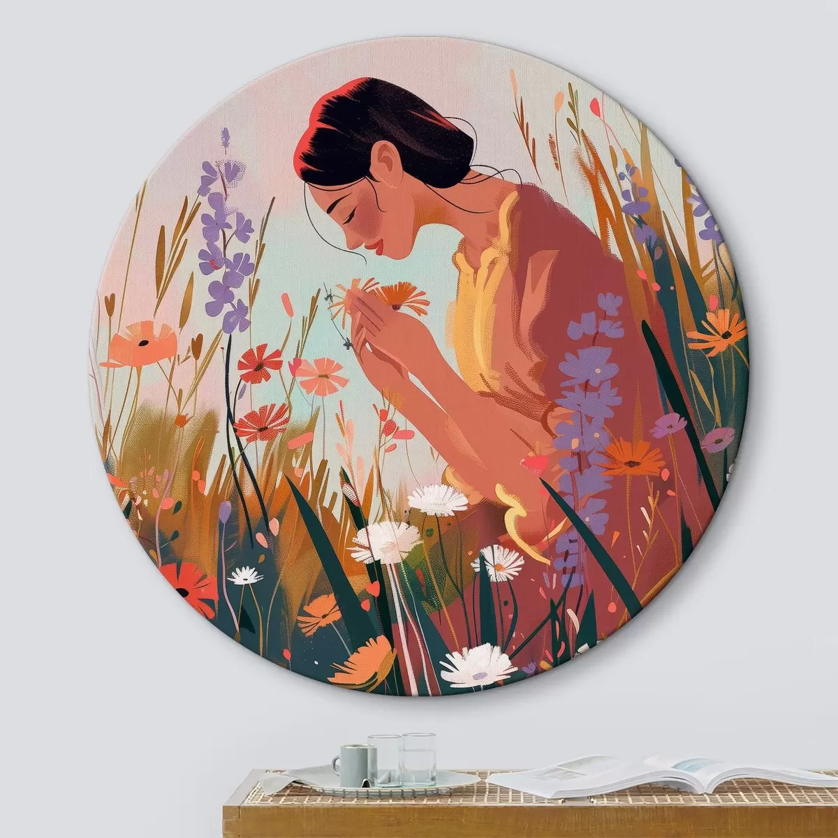 Okrągły obraz Dziewczyna na polu z kwiatami Nr r38801