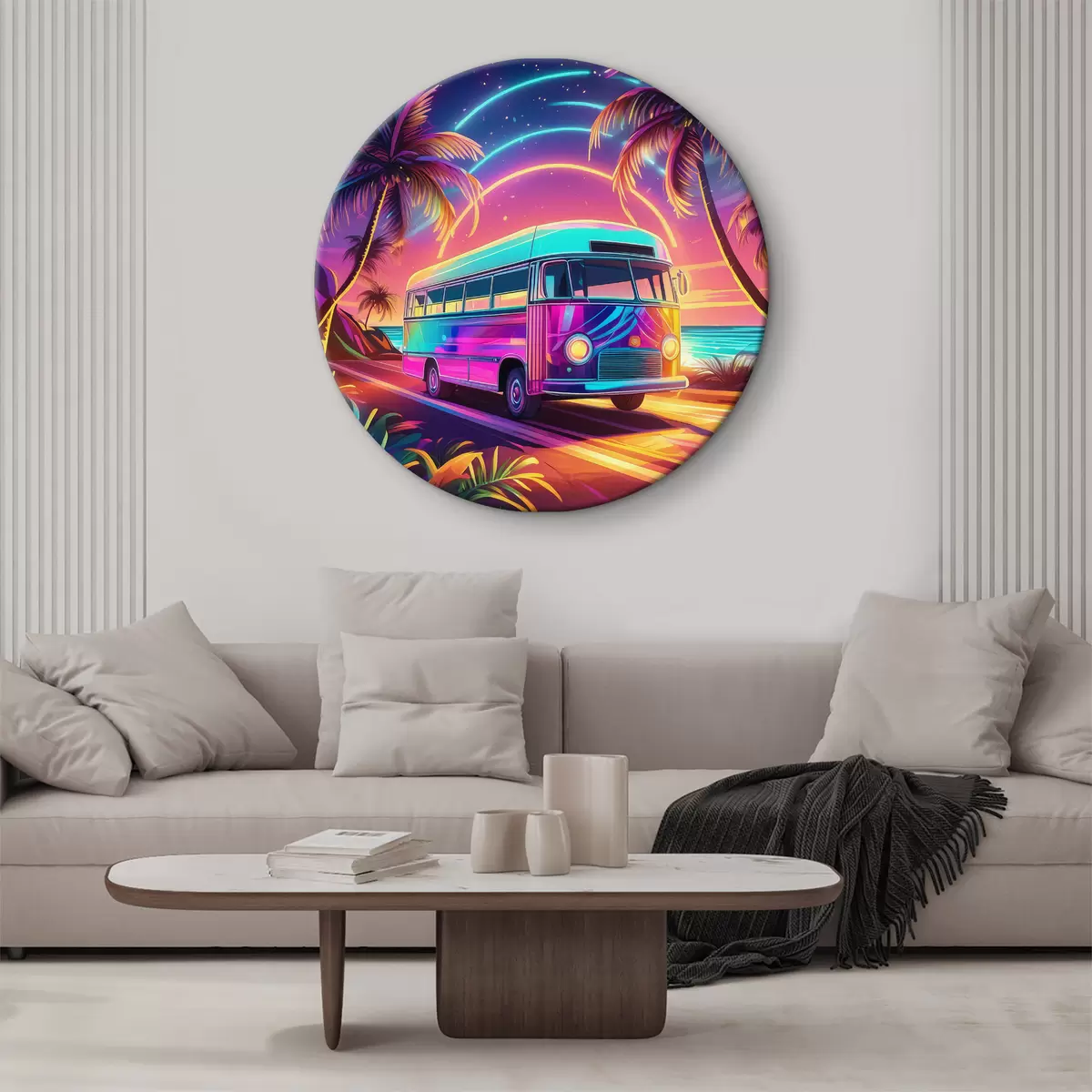 Okrągły obraz Czerwony samochód retro na plaży Nr r38811