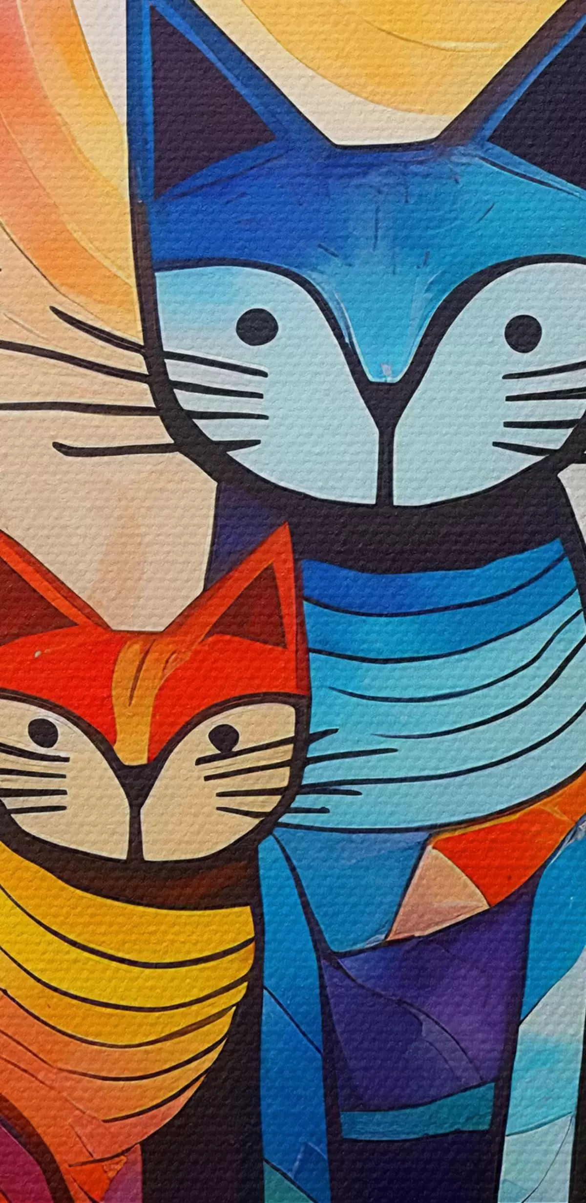 Okrągły obraz Wielobarwna abstrakcja z ciekawymi kotami Nr r38815