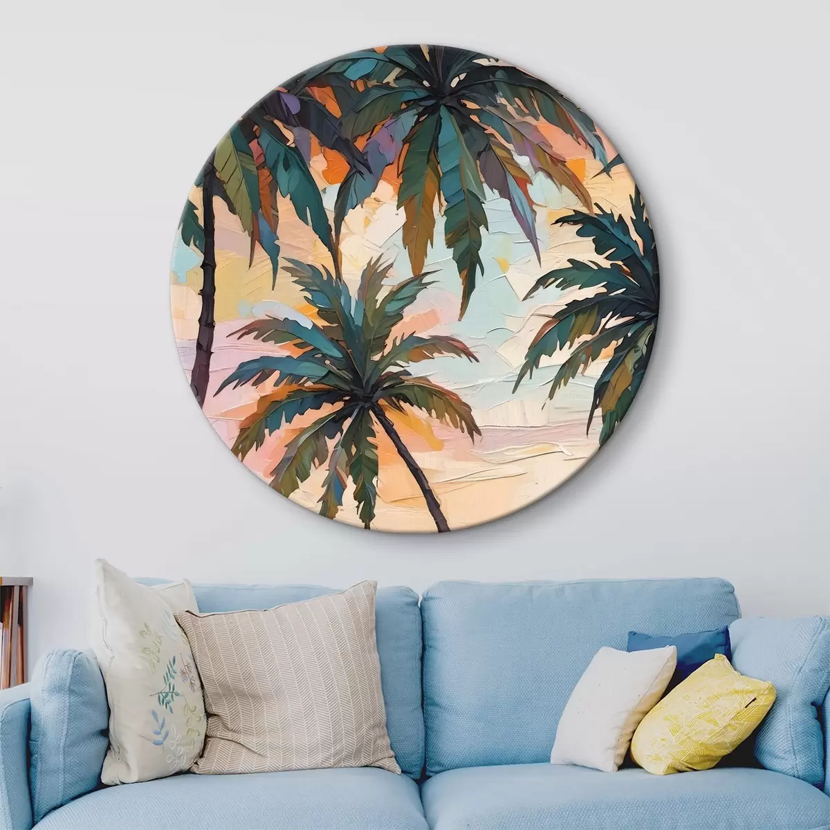 Okrągły obraz Palmy w promieniach zachodzącego słońca Nr r38826